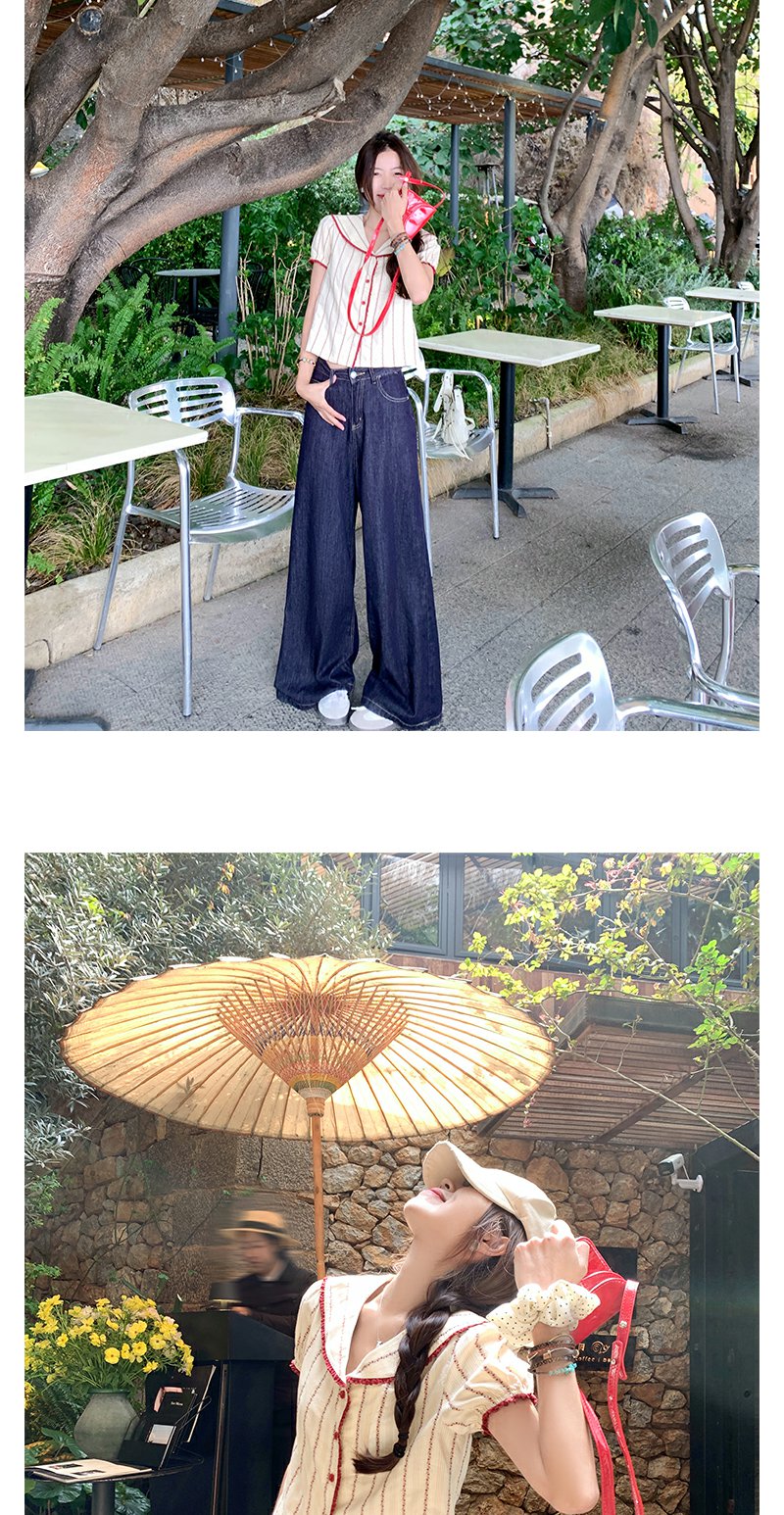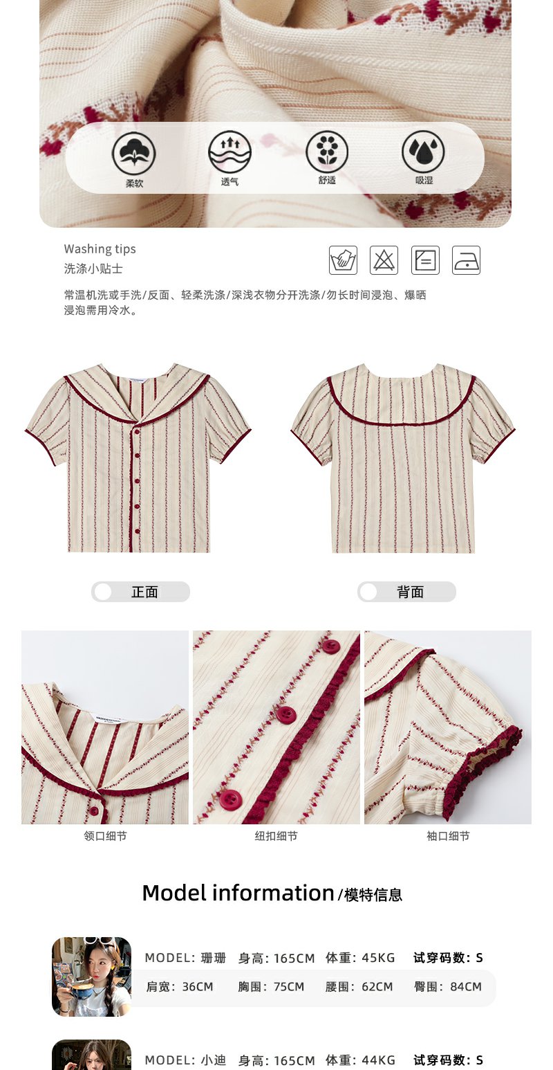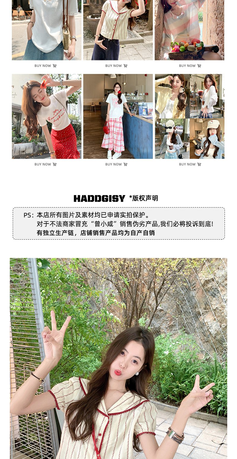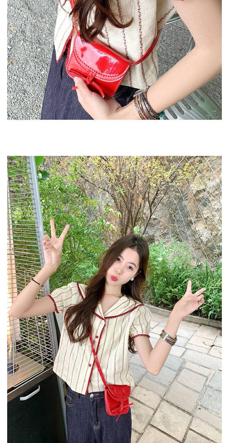 <曾小咸推荐>现货秒杀!翻领红色边泡泡袖短款衬衫 日常179.99 立减90 秒杀89.99!