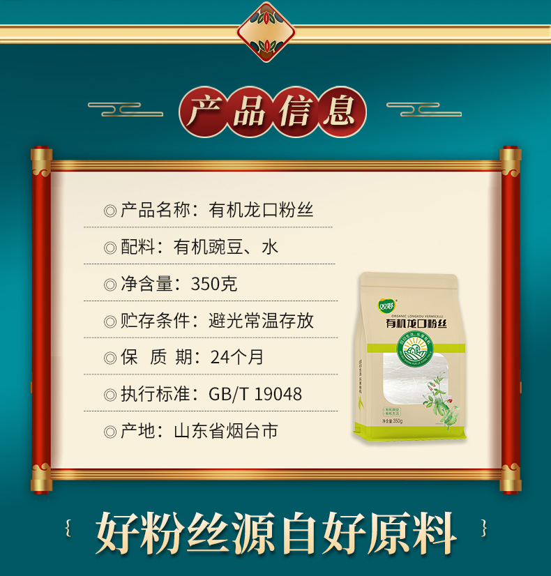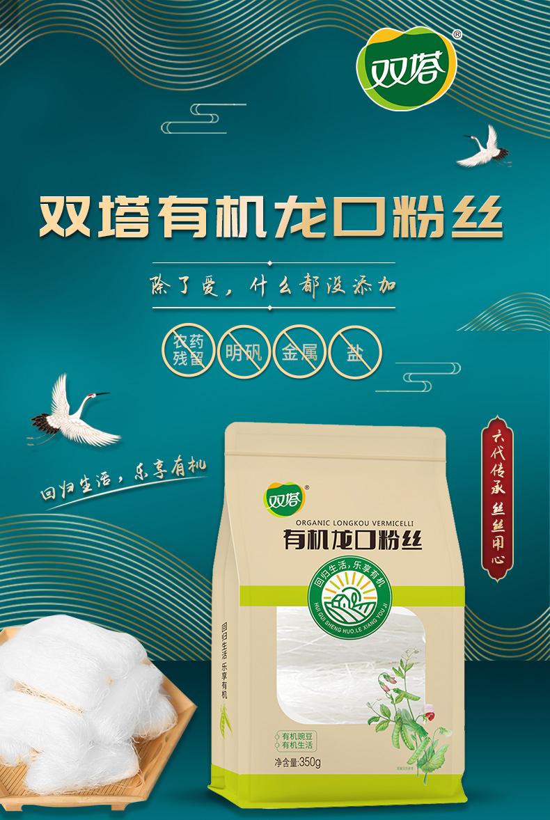 双塔有机龙口粉丝350g袋装【京东快递送货上门】