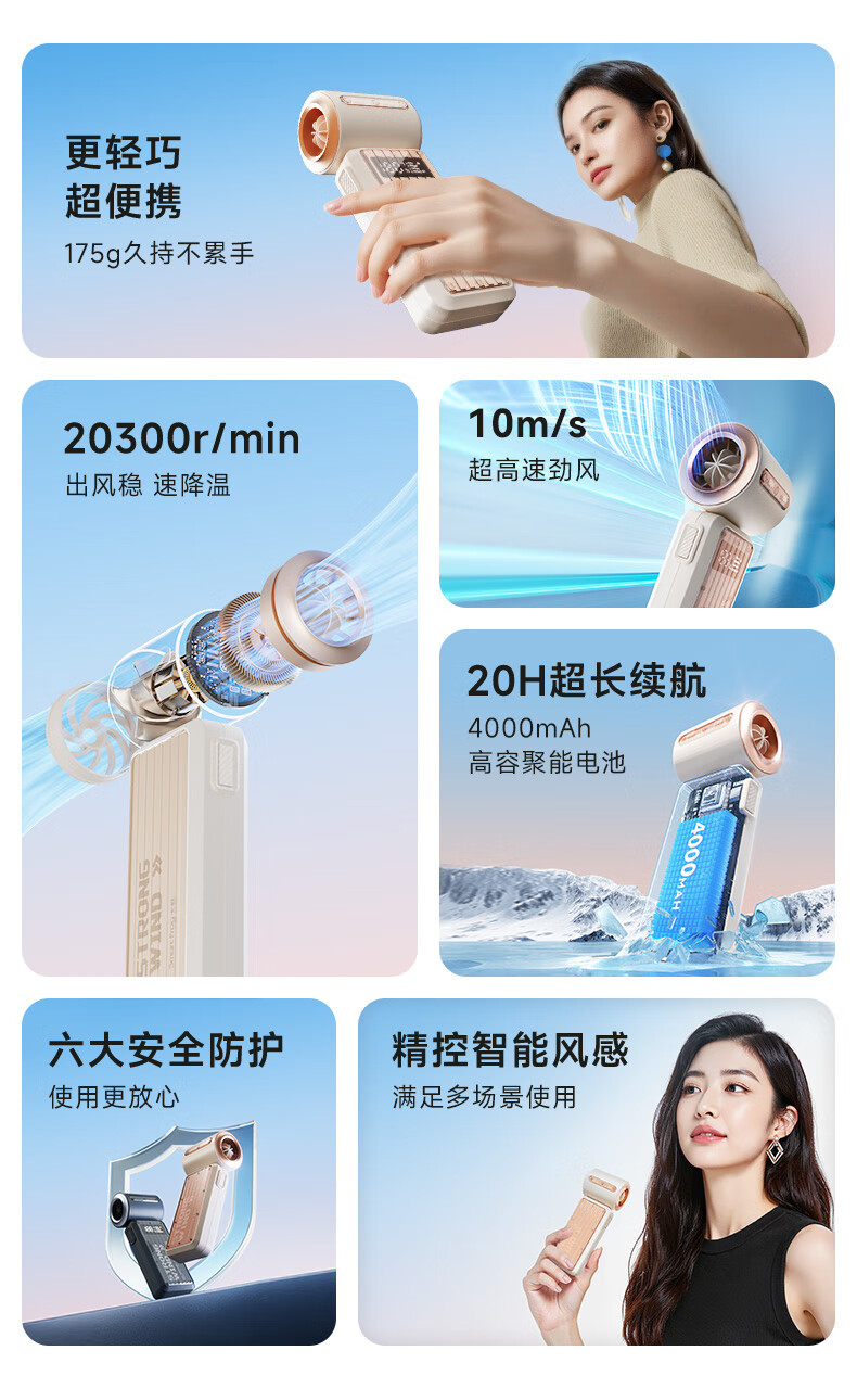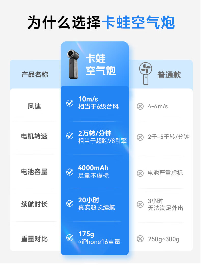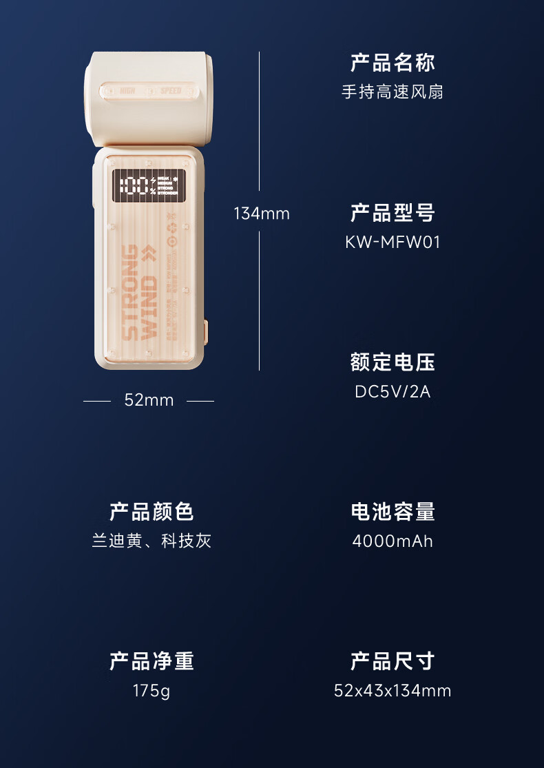 【小家电】卡蛙风宝手持小风扇迷你便携高速涡轮小风炮户外电风扇桌面充电无线款超长续航随身小型大风力电扇 HF
