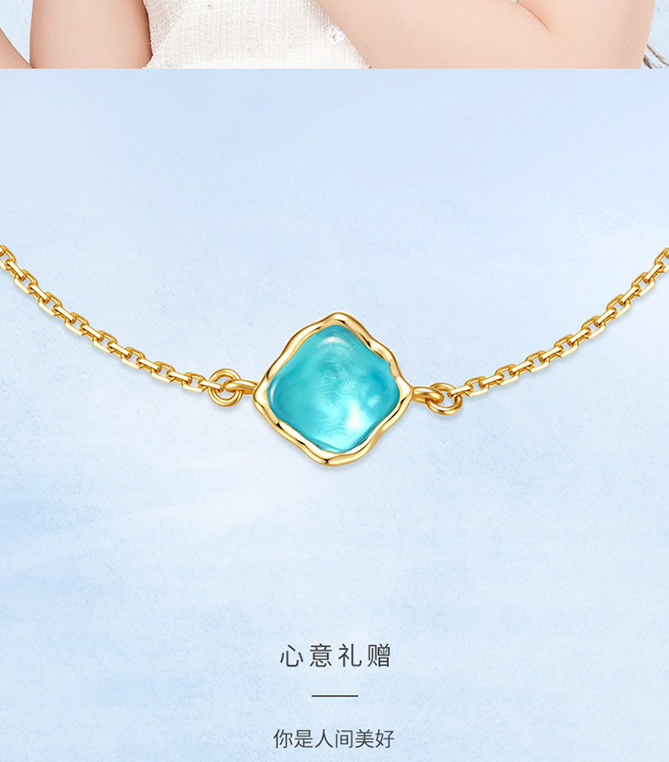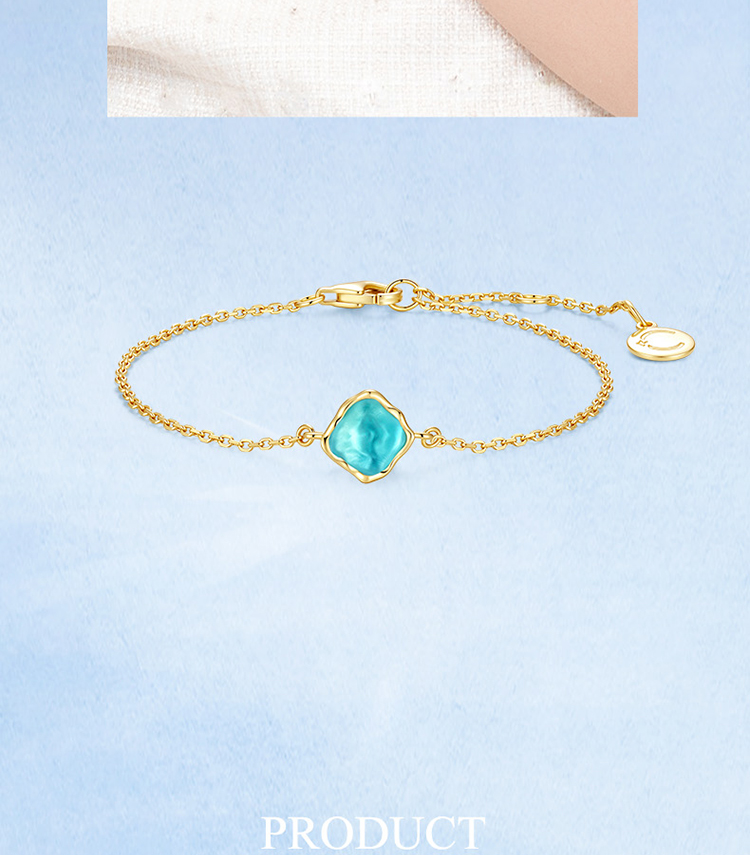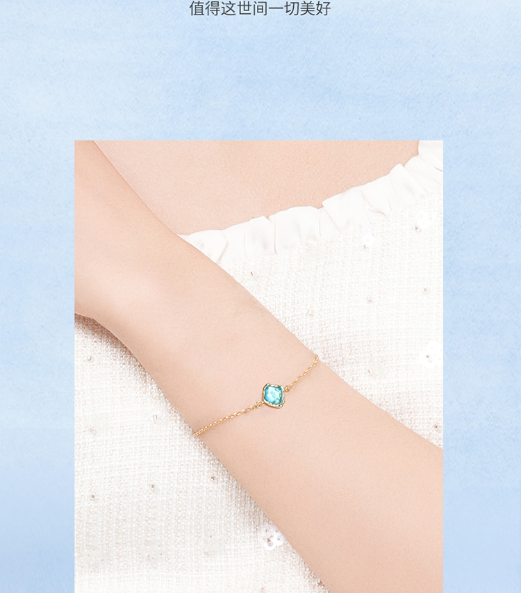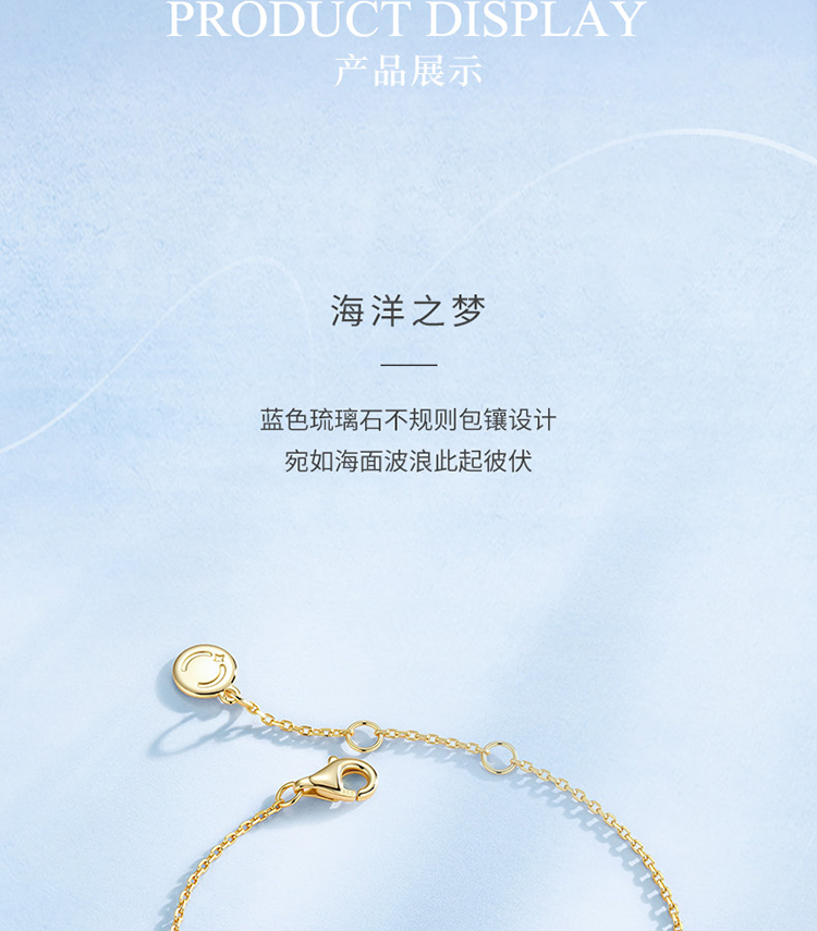 Fanci范琦 海洋之梦蓝色琉璃小众时尚复古风925银手链