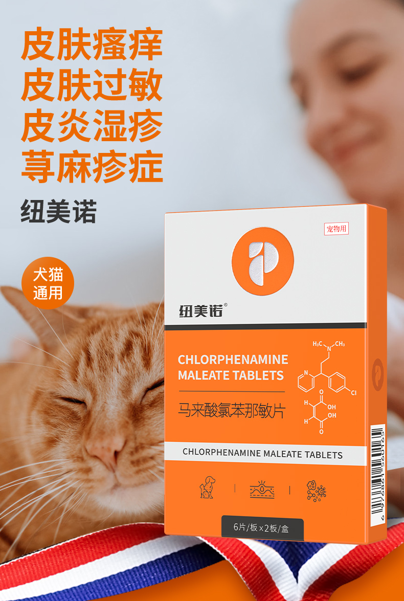 普安特狗狗皮肤病口服药瘙痒过敏药宠物止痒药猫咪犬用异位性皮炎 马来酸氯苯那敏片纽美诺