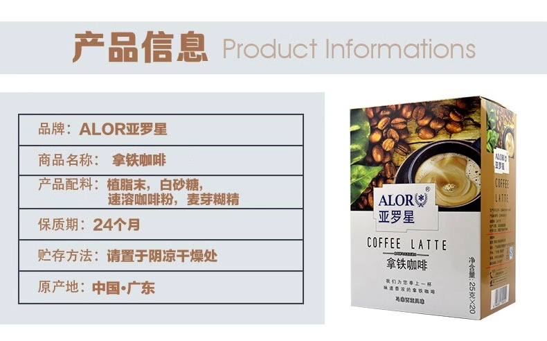 【跨境】ALOR亚罗星拿铁咖啡盒装 25克*20条 浓厚绵长 醇香细腻