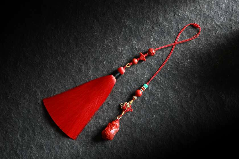 配件:朱砂小貔貅,朱砂,朱砂福字元宝,朱砂铜钱珠,天河石,黄水晶,铜飞碟,沙金灯笼珠