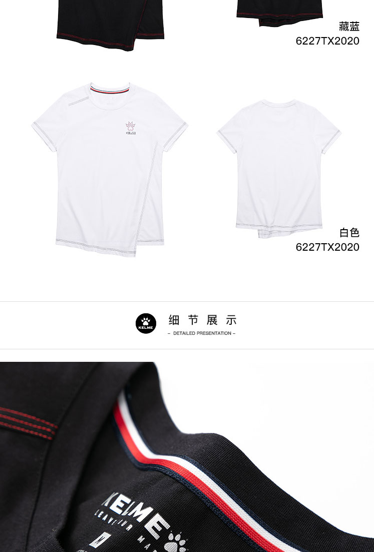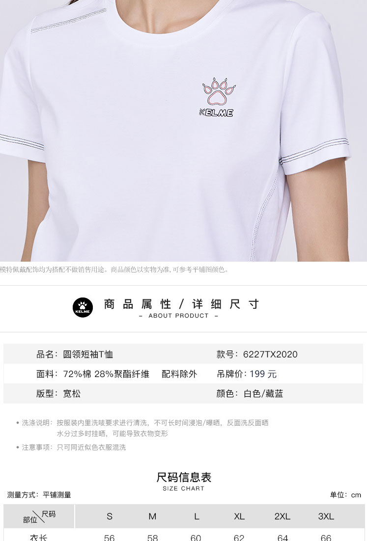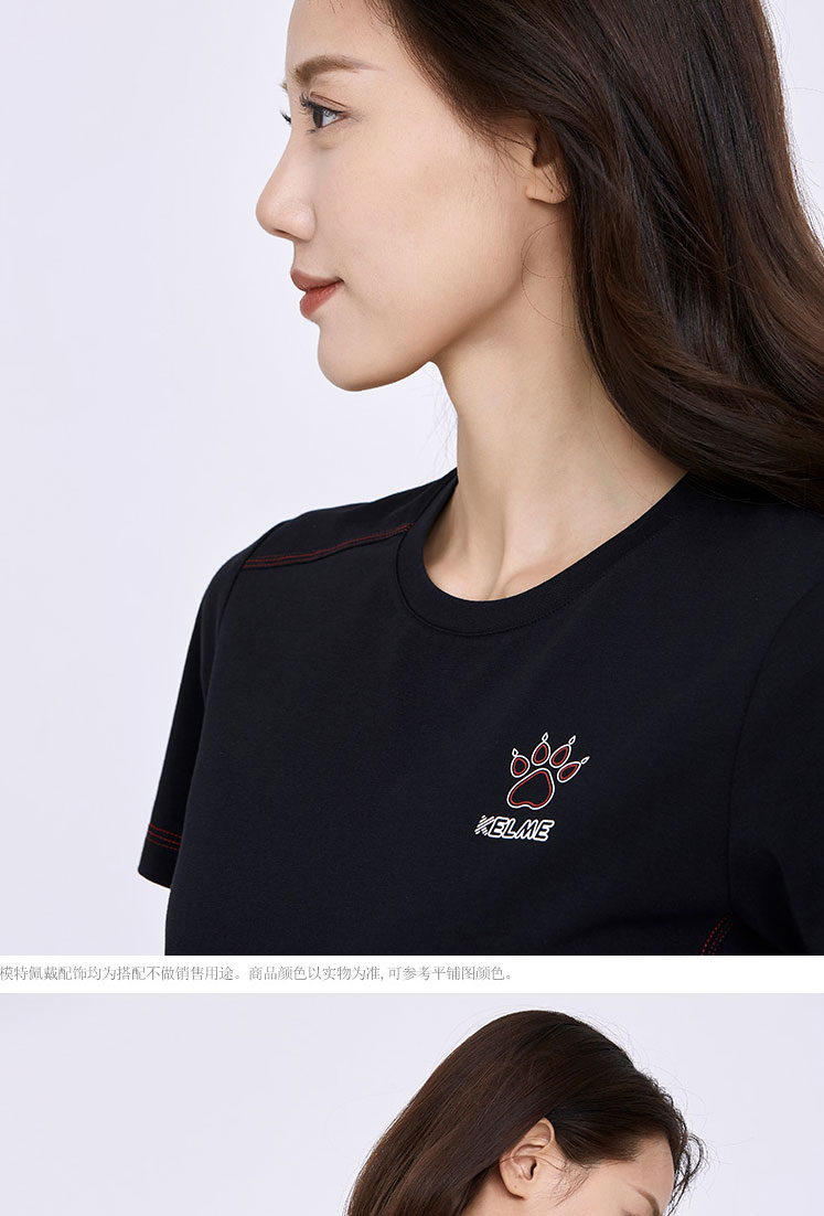 KELME卡尔美短袖t恤女纯色短款上衣圆领2022年夏季透气打底衫体恤6227TX2020