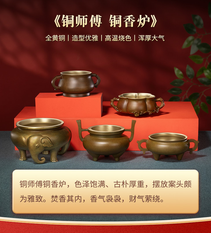 铜师傅 铜摆件《铜师傅 铜香炉》家用室内香插香薰炉