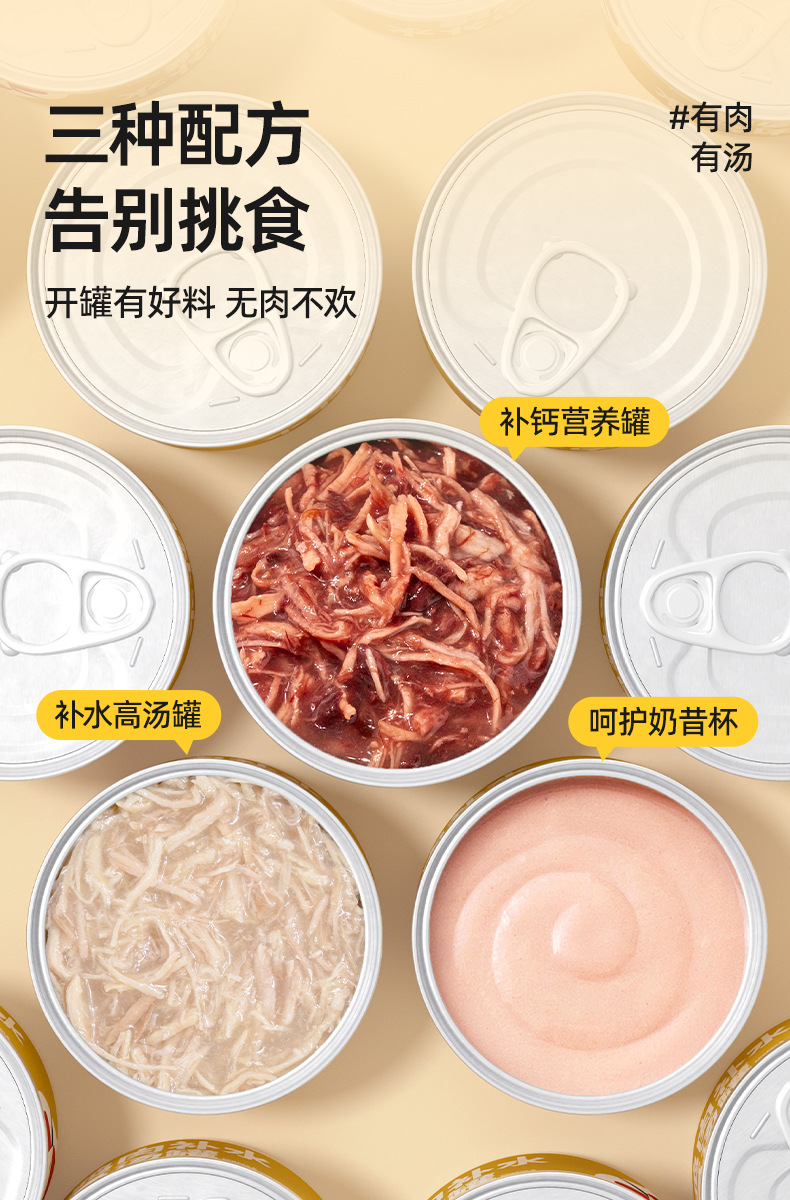 猫咪零食鸡丝羊奶猫咪罐头85g宠物零食浓汤补水猫湿粮新款新品猫罐头