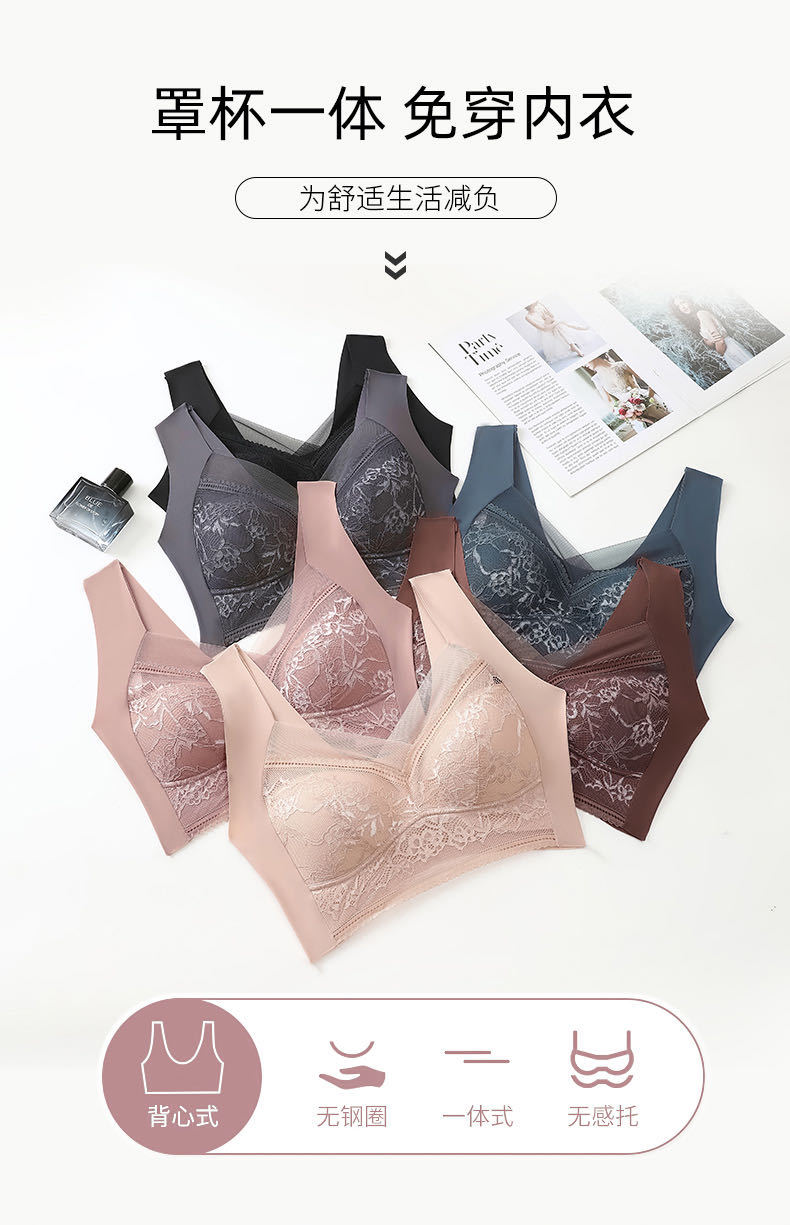 新品【第二件0元!!!加大码不加价!】蕾丝百搭新款,凸显个性;舒适贴身,自信美丽;背心式设计,夏季必备;固定杯、无痕侧收副乳、无钢圈文胸内衣,呵护胸部健康!