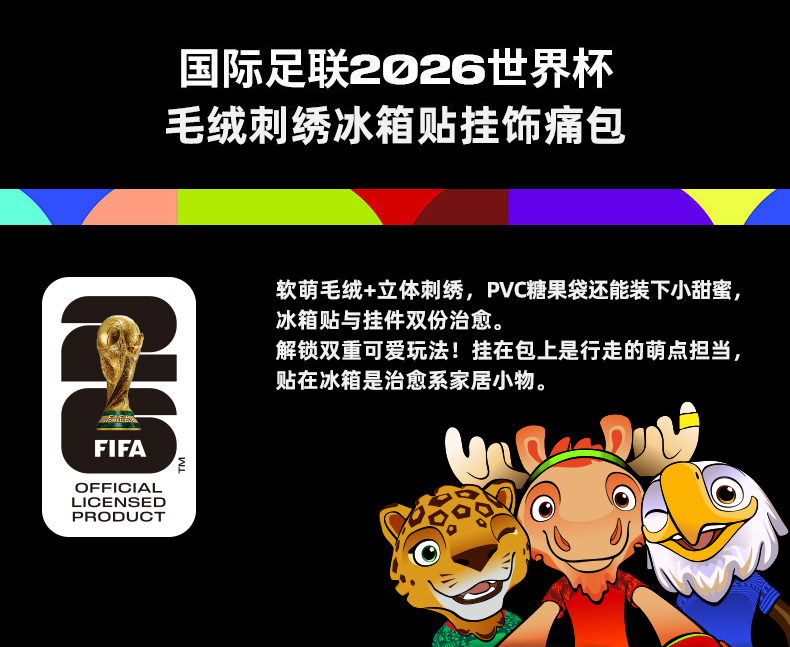 2026世界杯毛绒刺绣冰箱贴挂饰痛包-鹿/豹/鹰