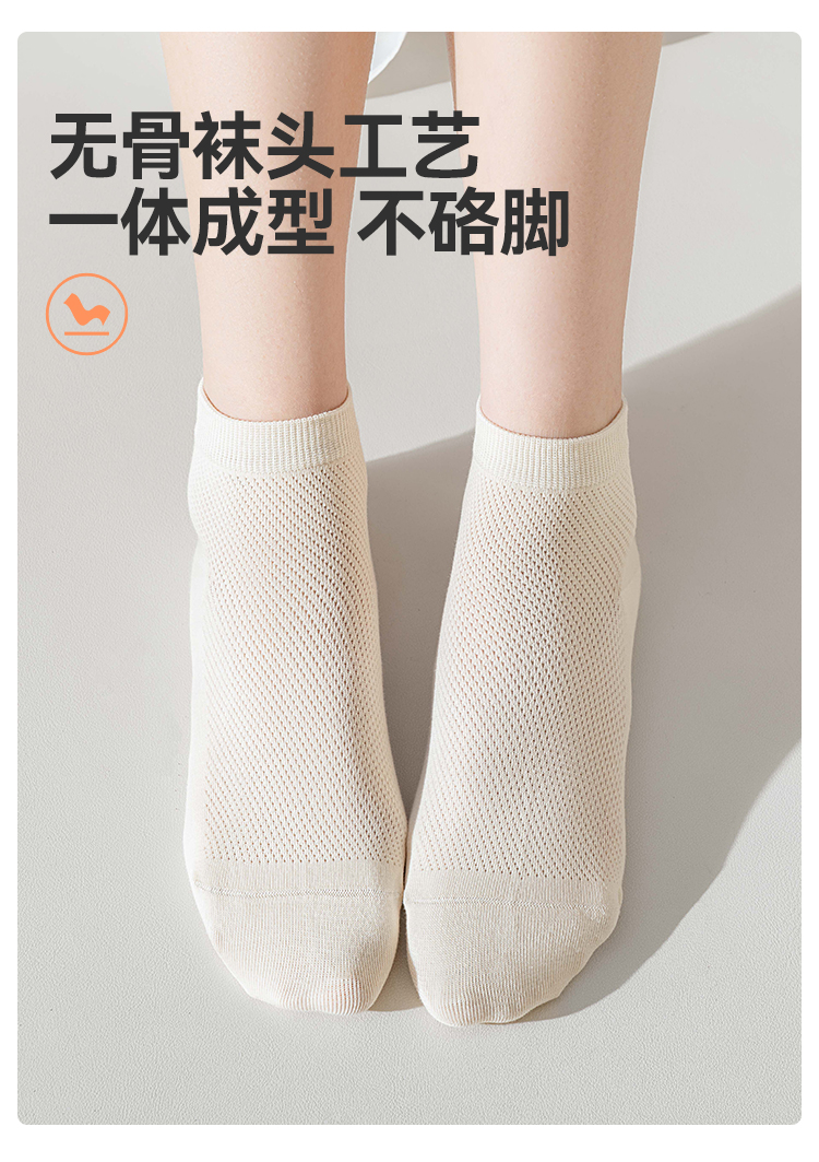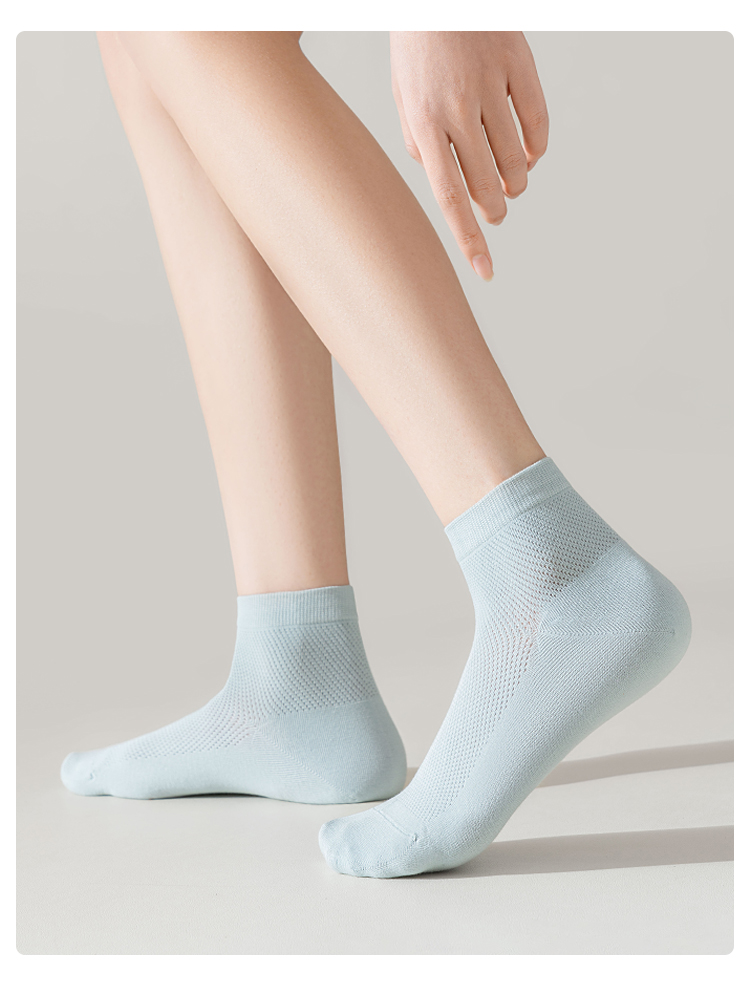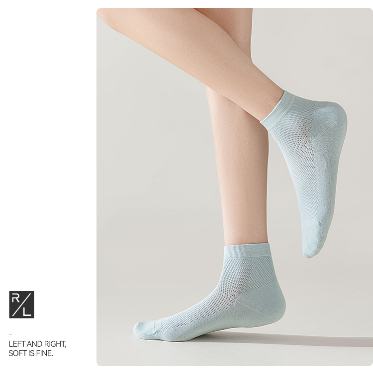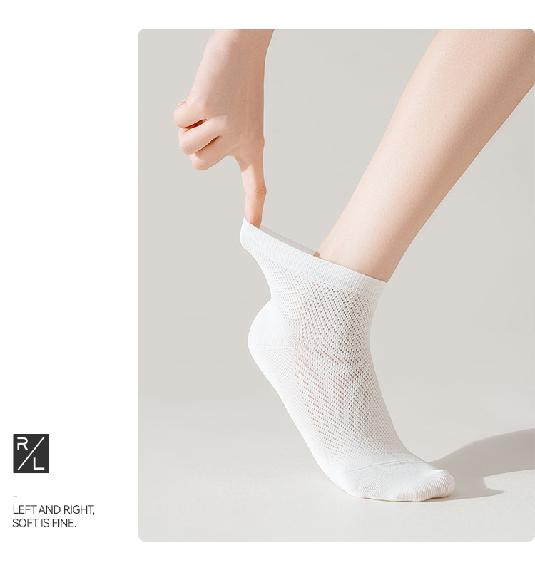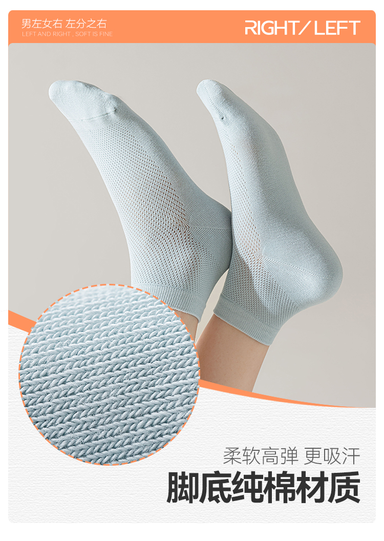 左分之右春夏新款透气网眼女袜纯棉10A抗菌纯色女士船袜无骨短筒