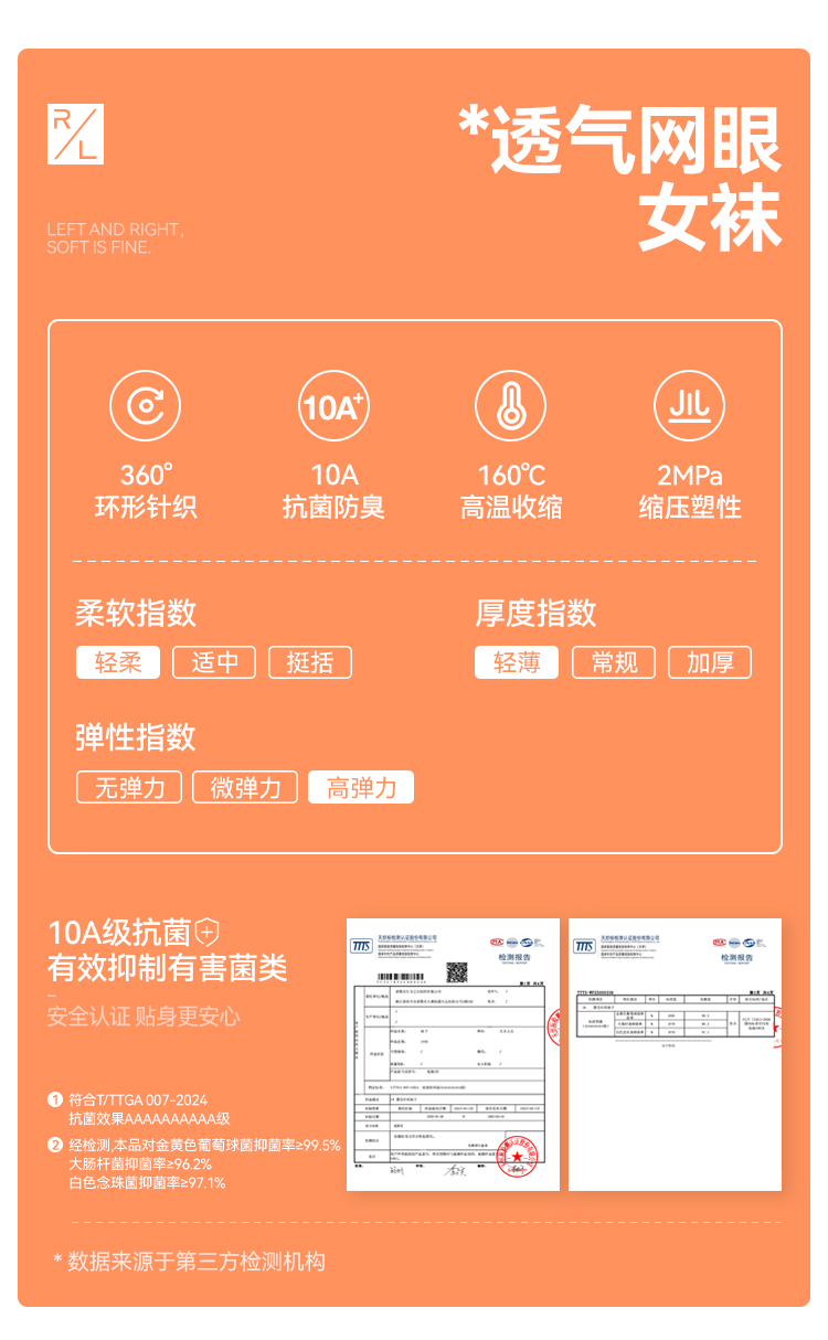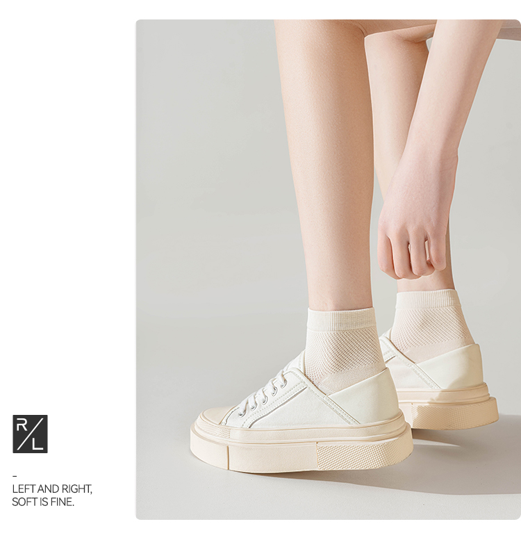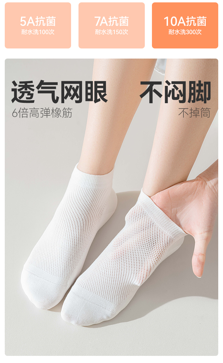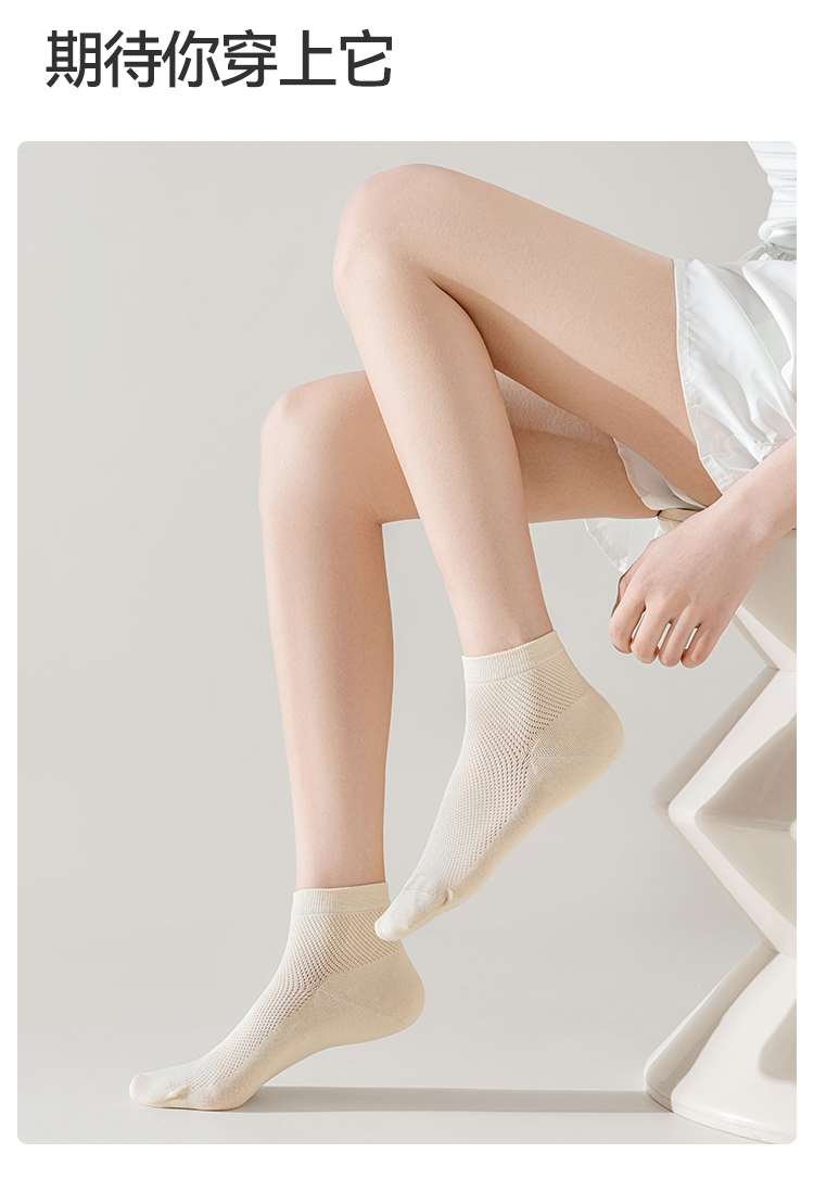 左分之右春夏新款透气网眼女袜纯棉10A抗菌纯色女士船袜无骨短筒