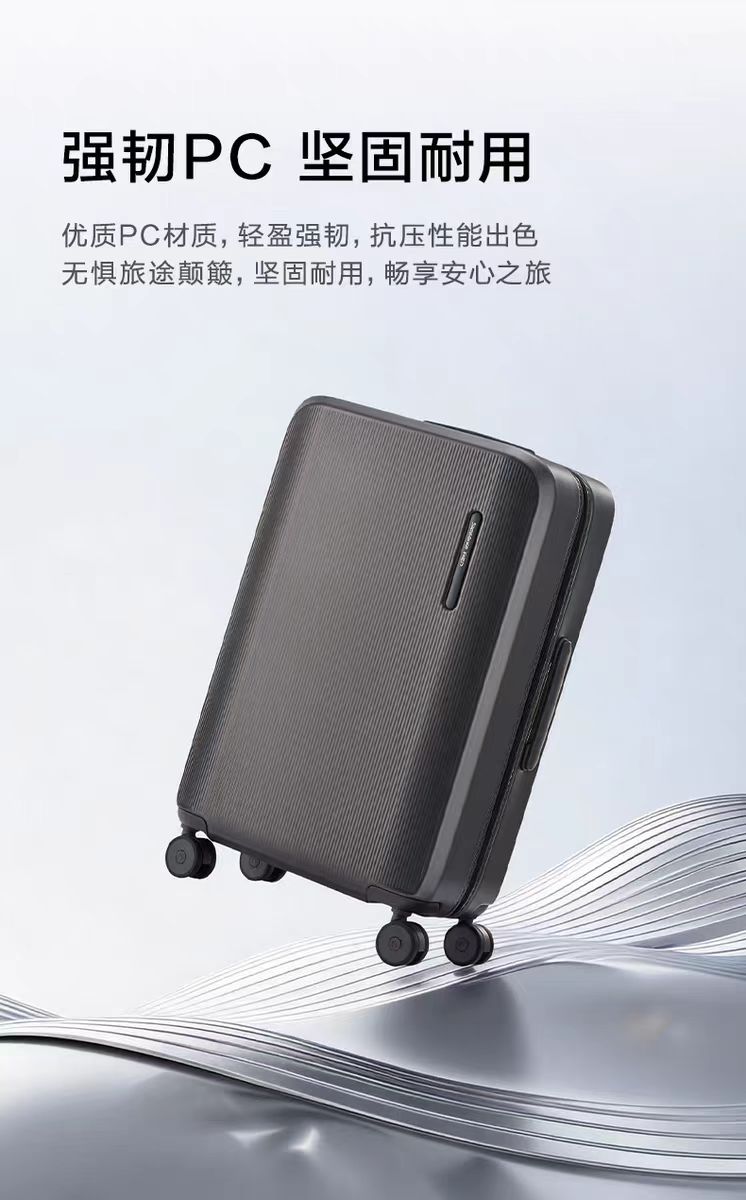 内里双面拉链,整齐利落,静音360°飞机轮。