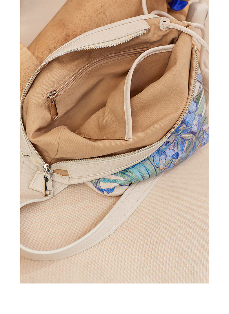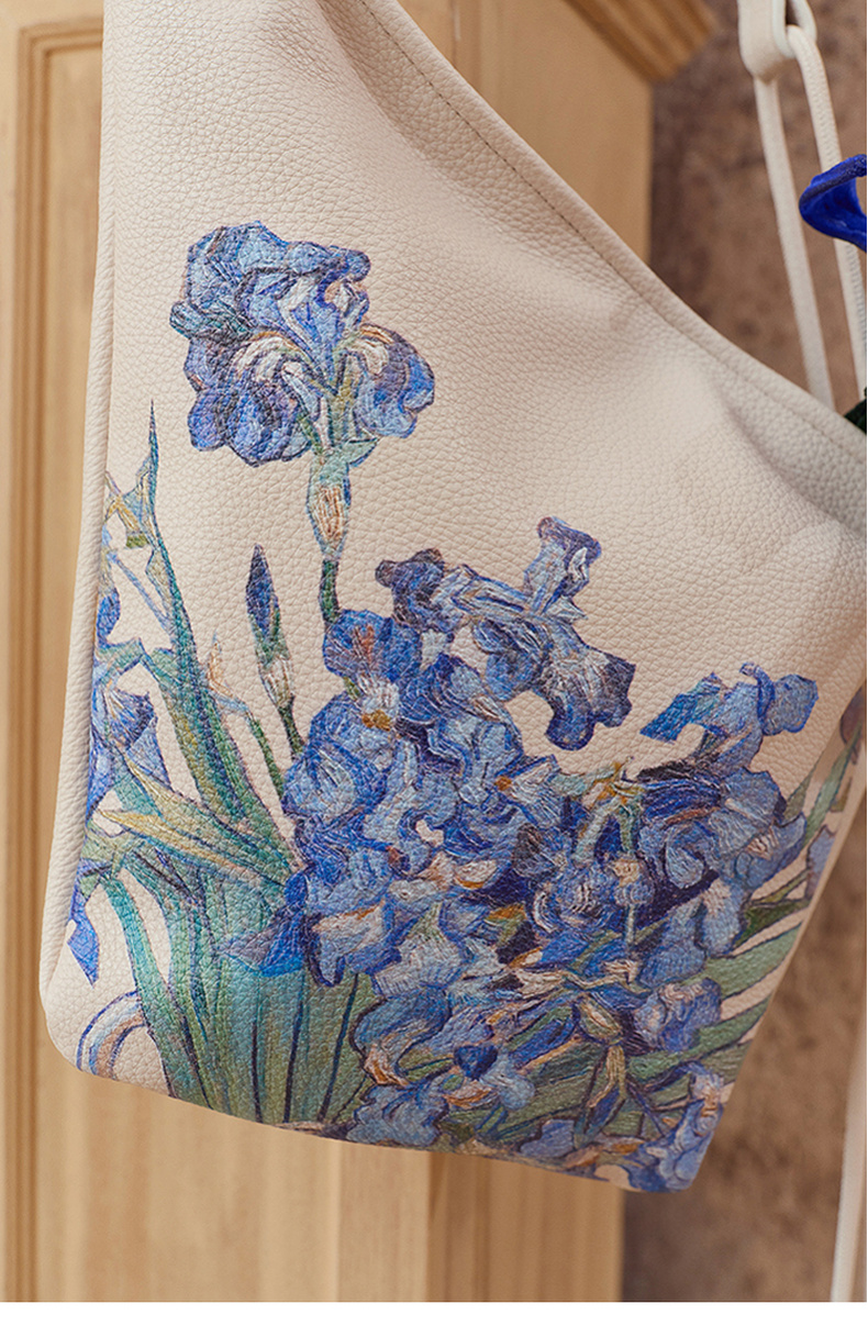 两三事梵高文艺鸢语诗廊2025秋新款鸢尾花印花荔枝纹PU斜挎包女包