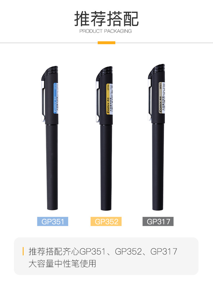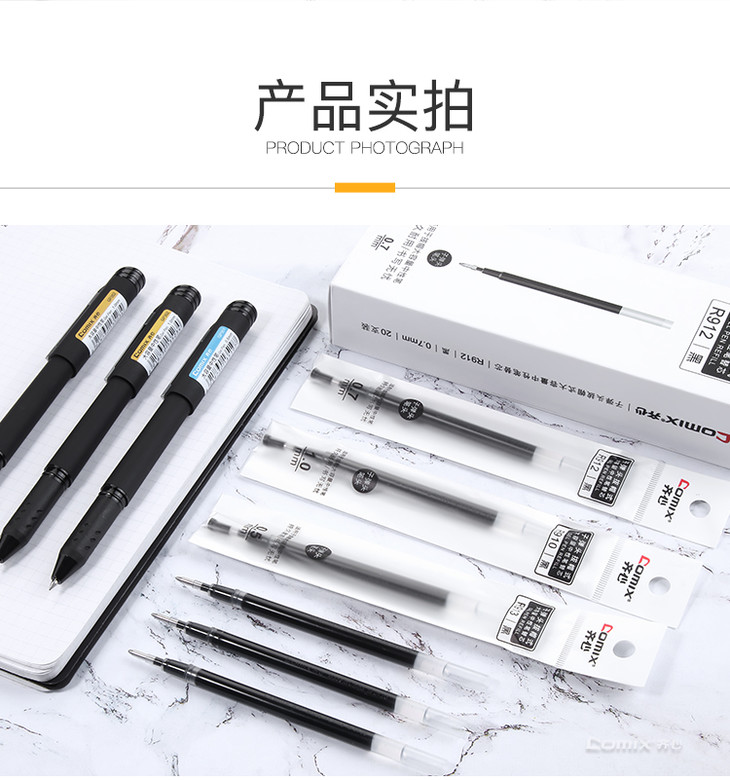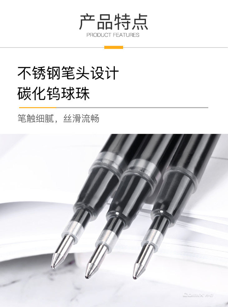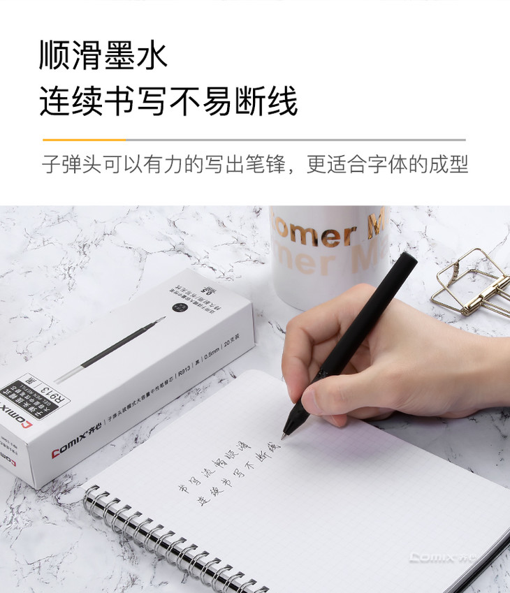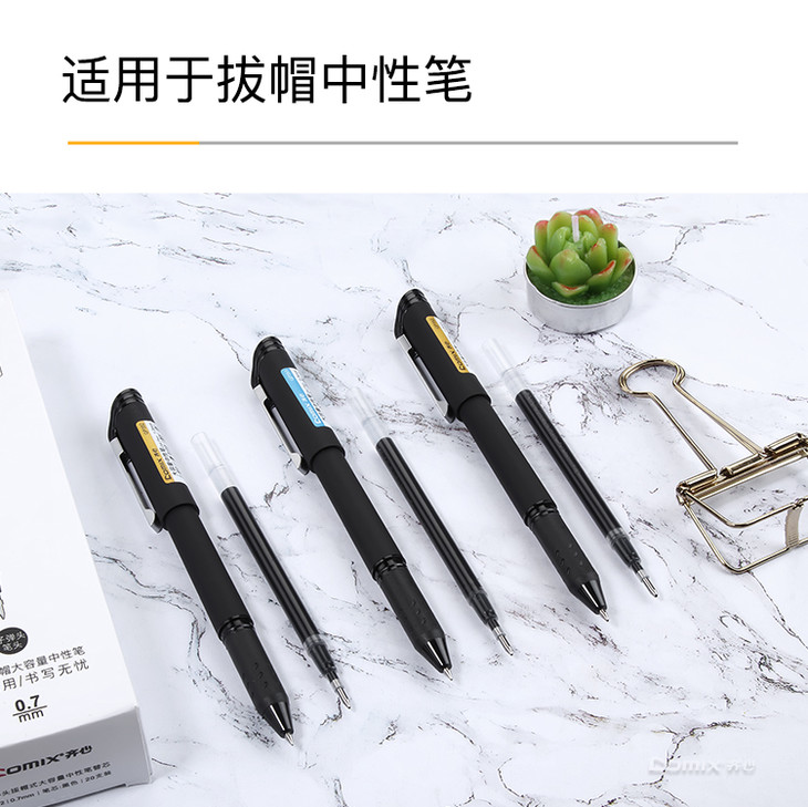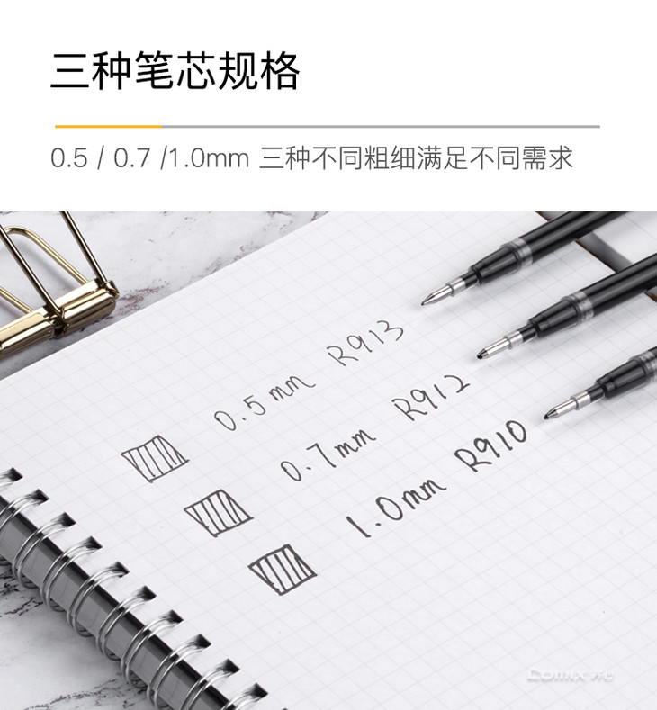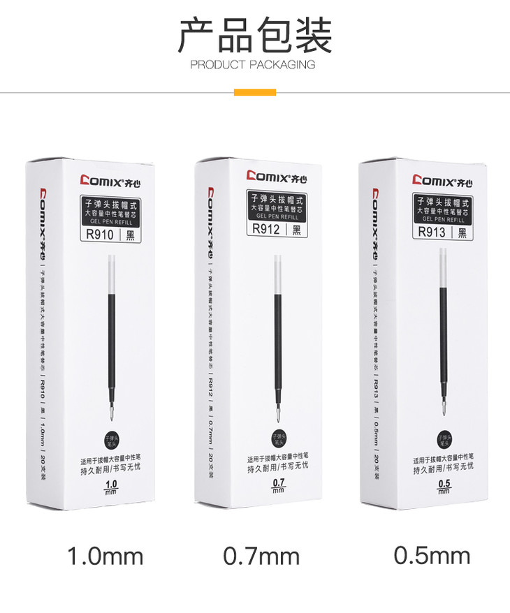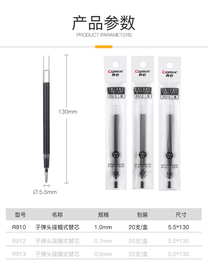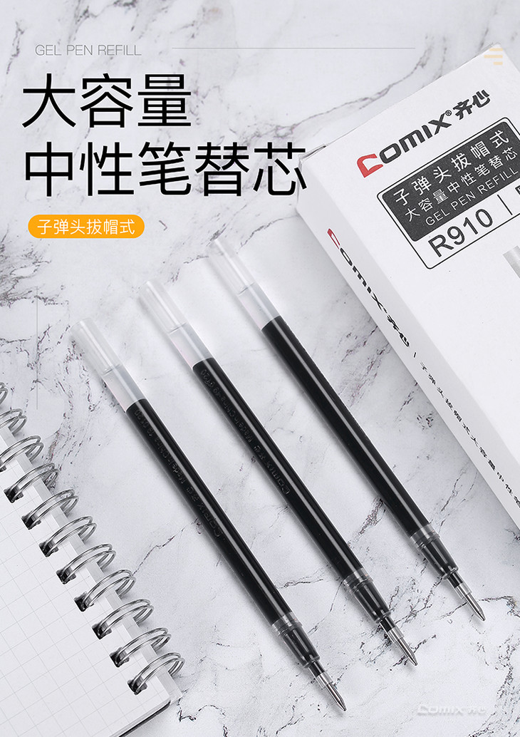 齐心 R910 子弹头拔帽式大容量中性笔替芯 1.0mm