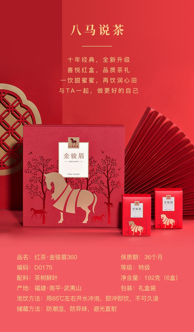 八马茶业金索红360系列 特级武夷山金骏眉192g