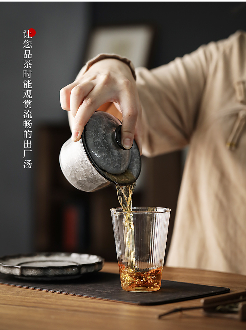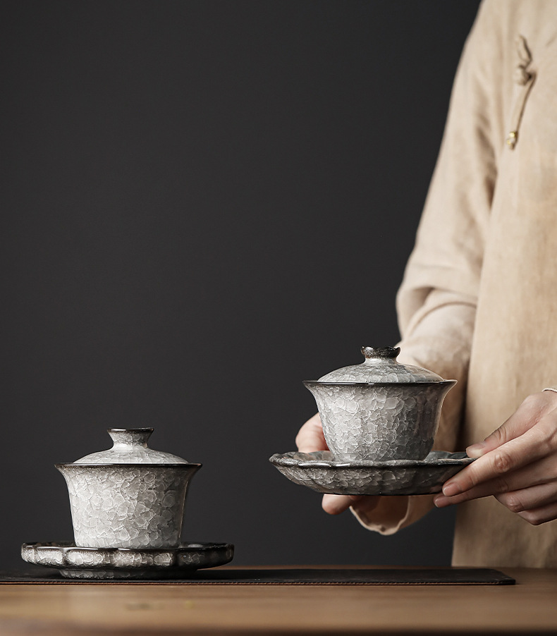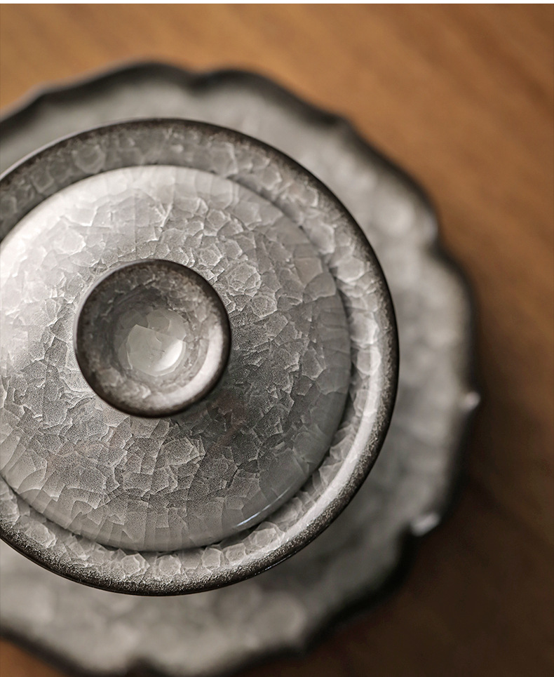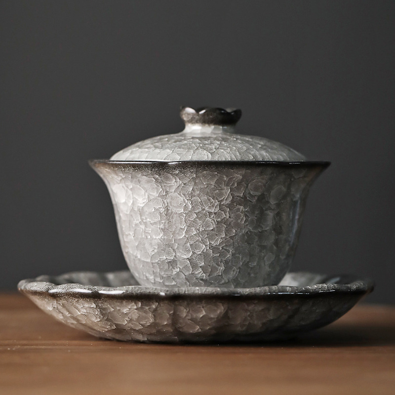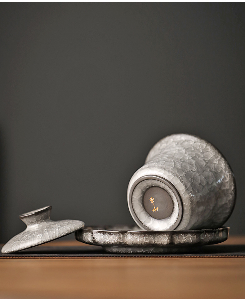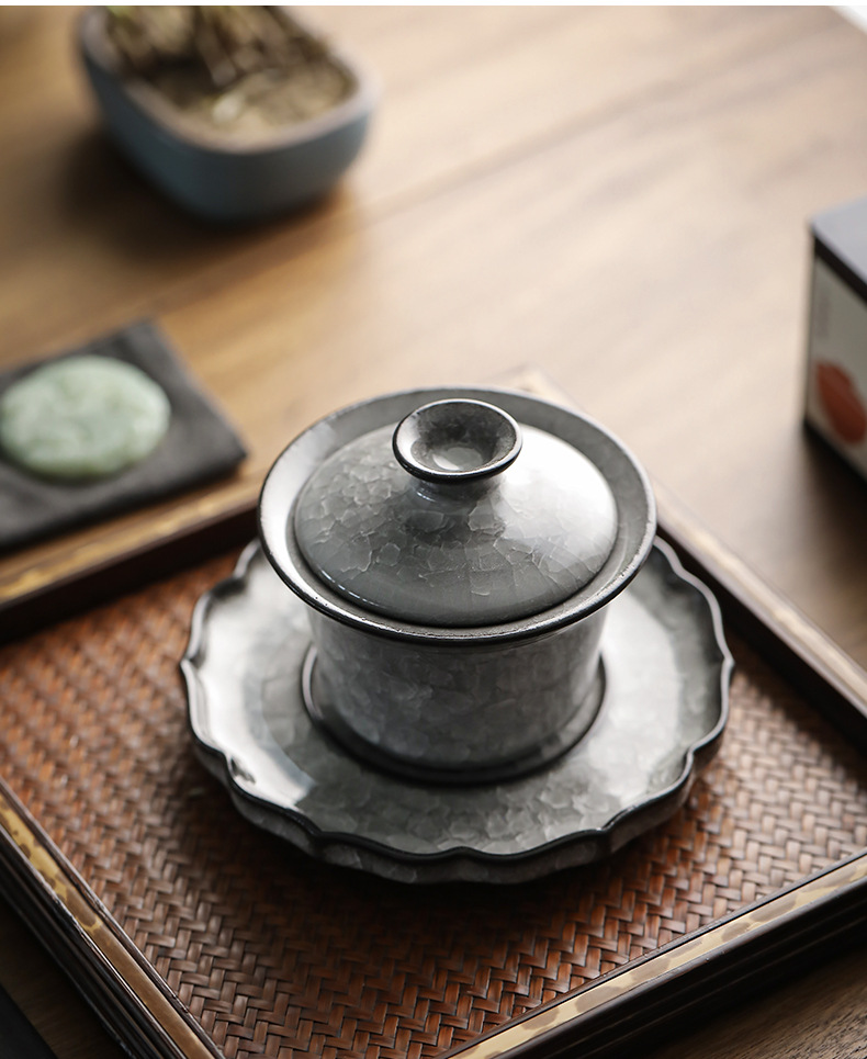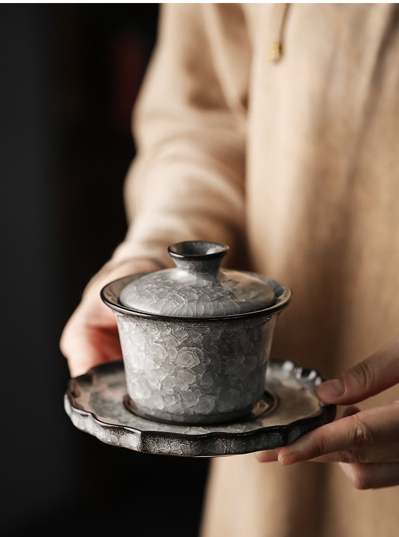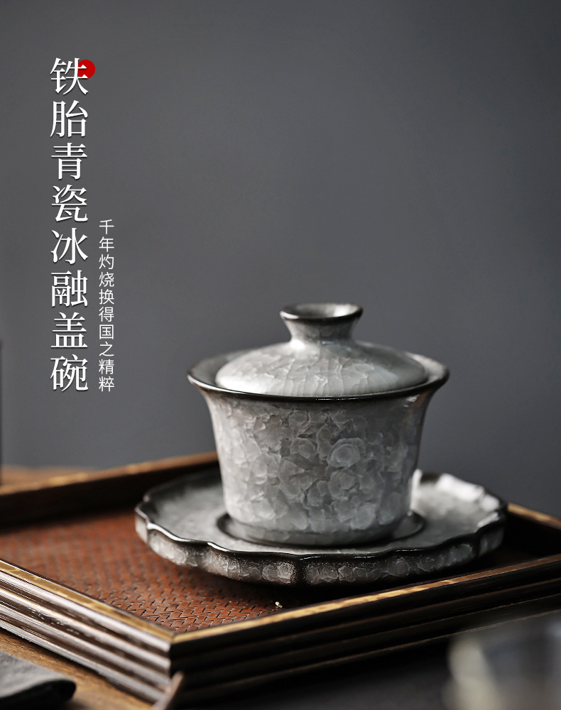 龙泉三才盖碗茶杯黑冰单个青瓷泡茶碗铁胎哥窑冰裂纹陶瓷功夫茶具