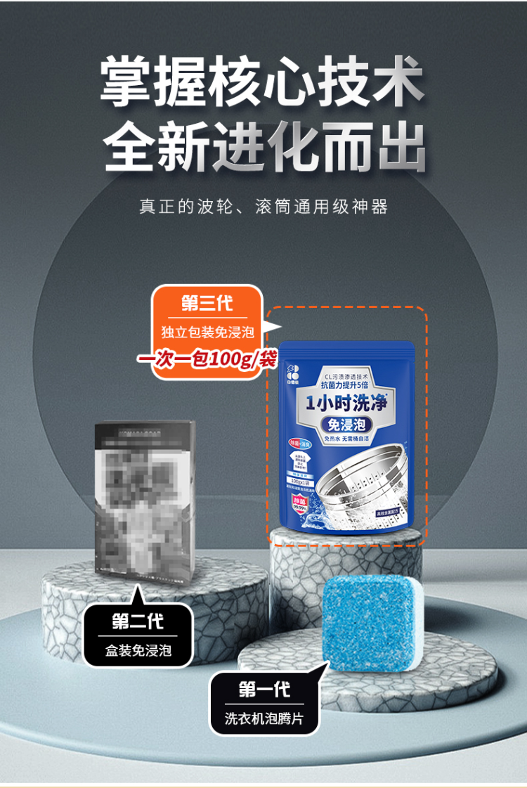 ✅免浸泡浸泡,边转边清洁 ,免热水,直接使用自来水,冷水速溶