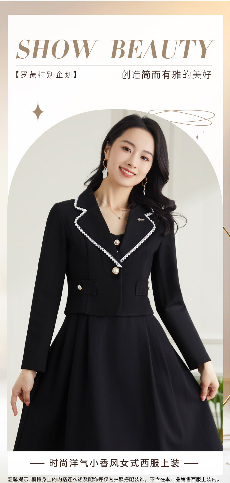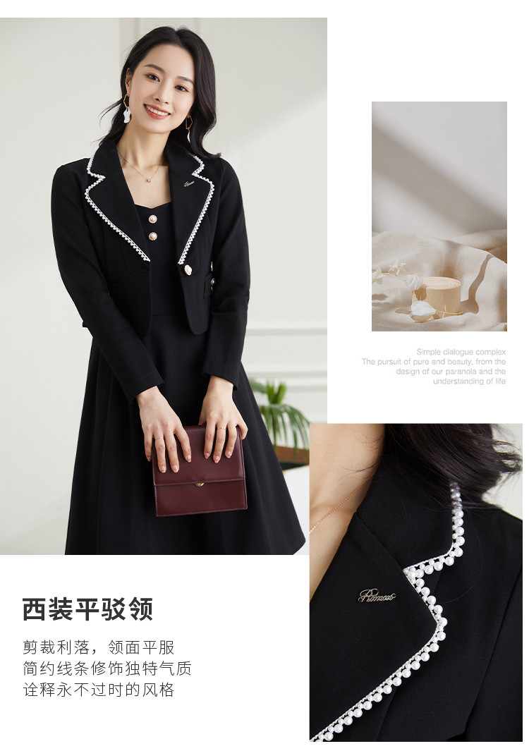 罗蒙春秋女装小香风小西装外套女士修身短款优雅气质拼色领单西服上衣外套