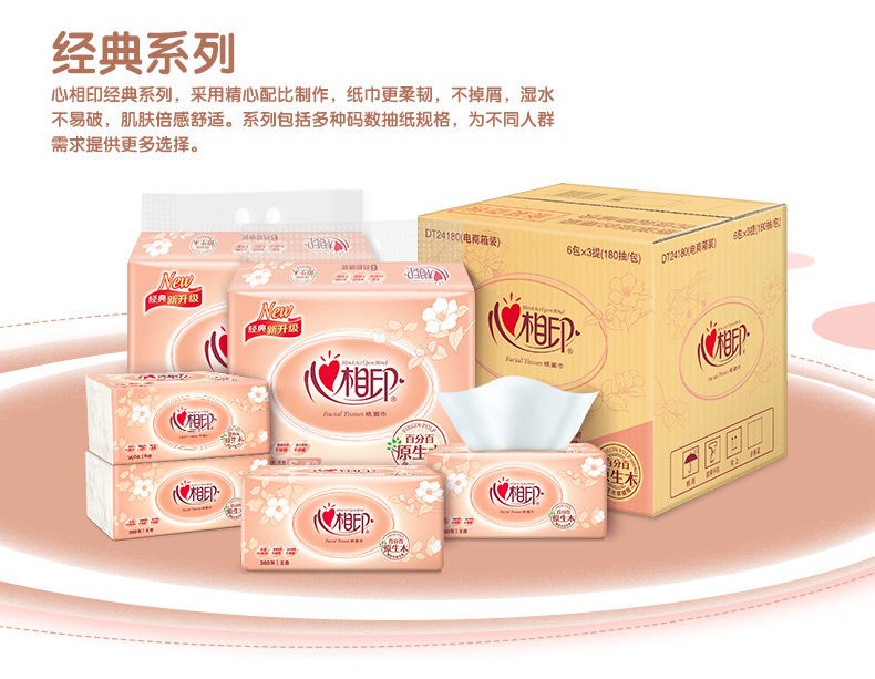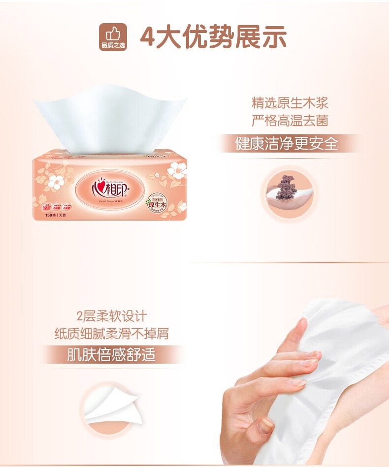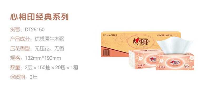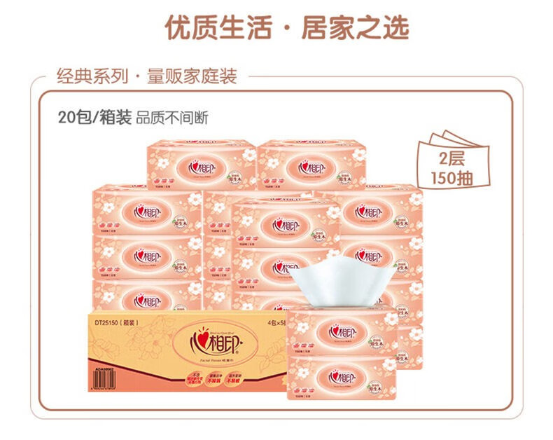 心相印 金装经典系列家用实惠装抽纸150抽/包*20包