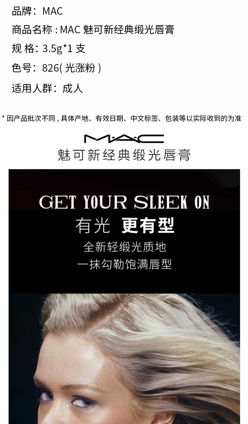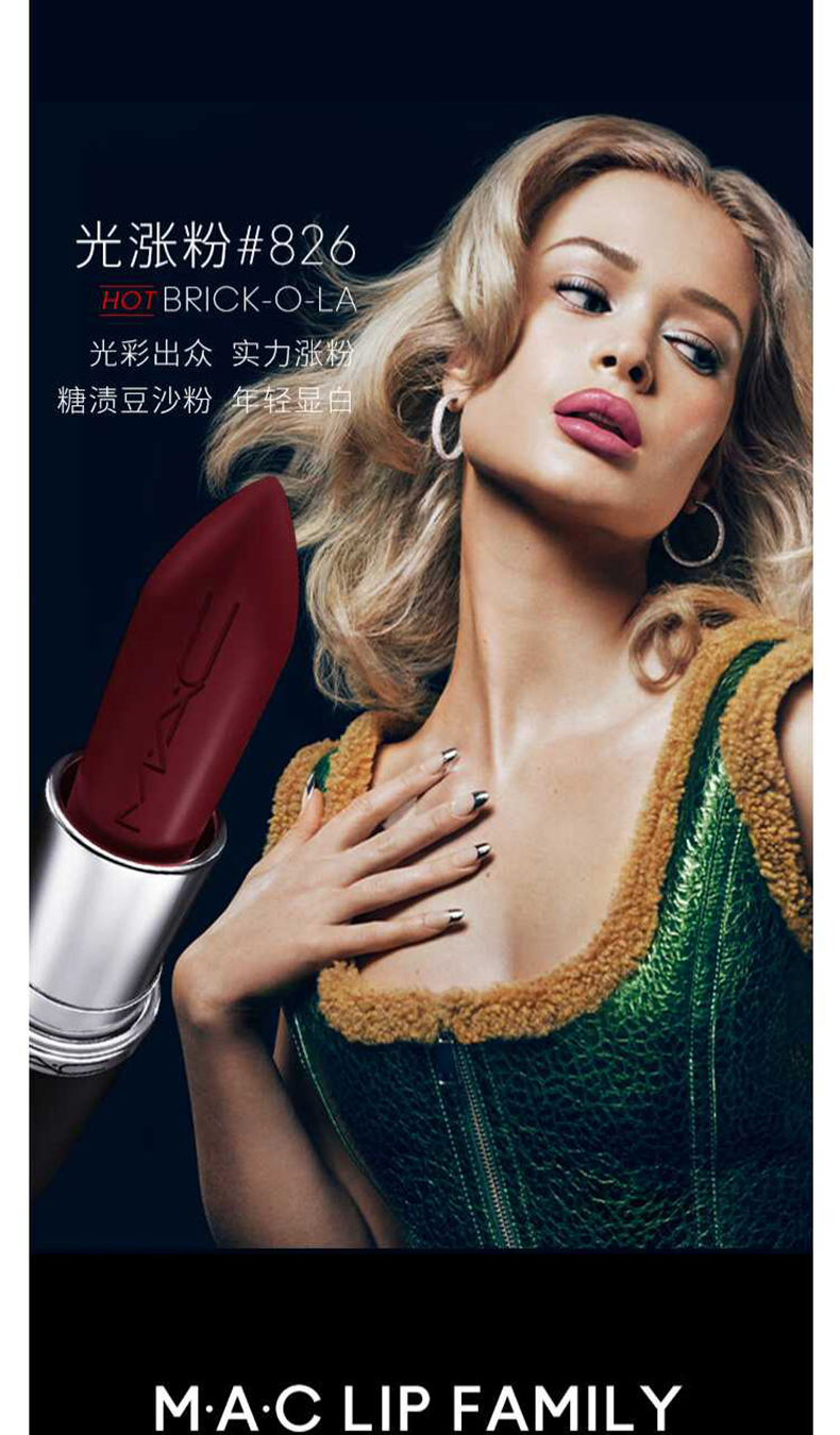 【礼盒装】MAC魅可新经典缎光口红826(光涨粉)3.5g1支