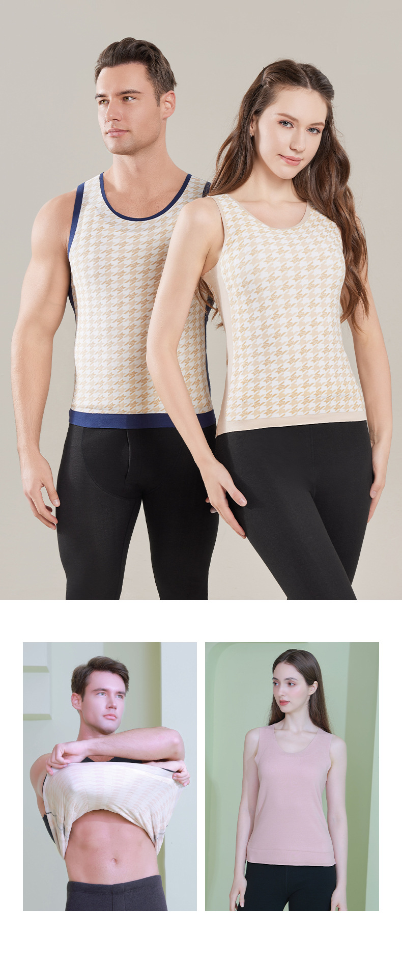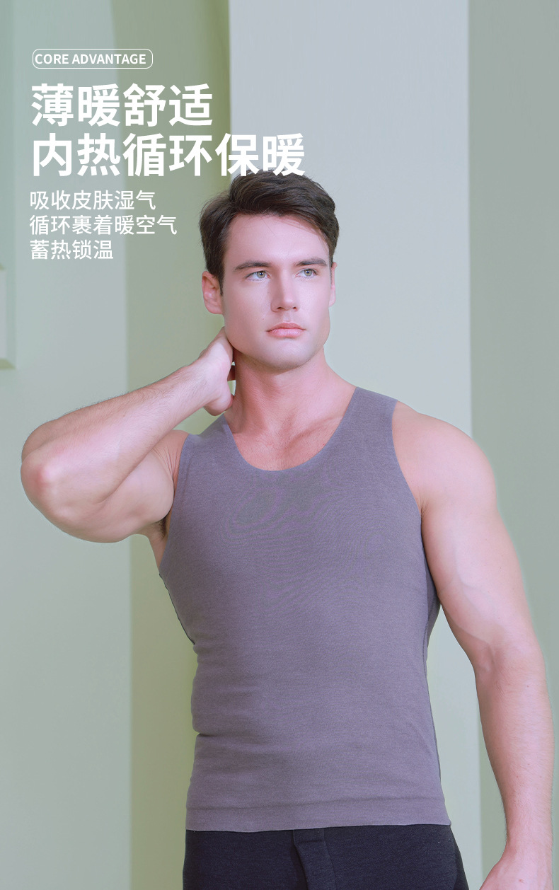 秋冬速暖羊毛保暖背心 男女加厚无痕7A抗菌贴片内衣 打底衫可外穿