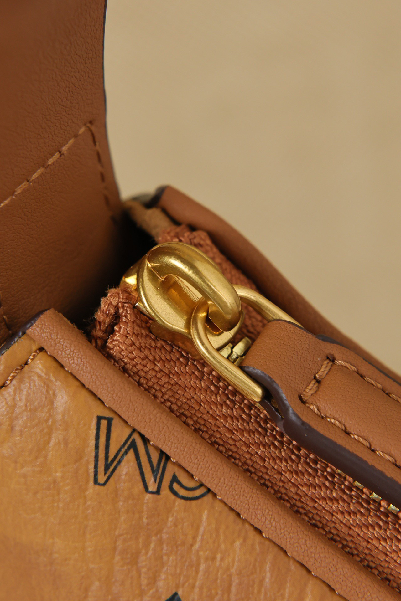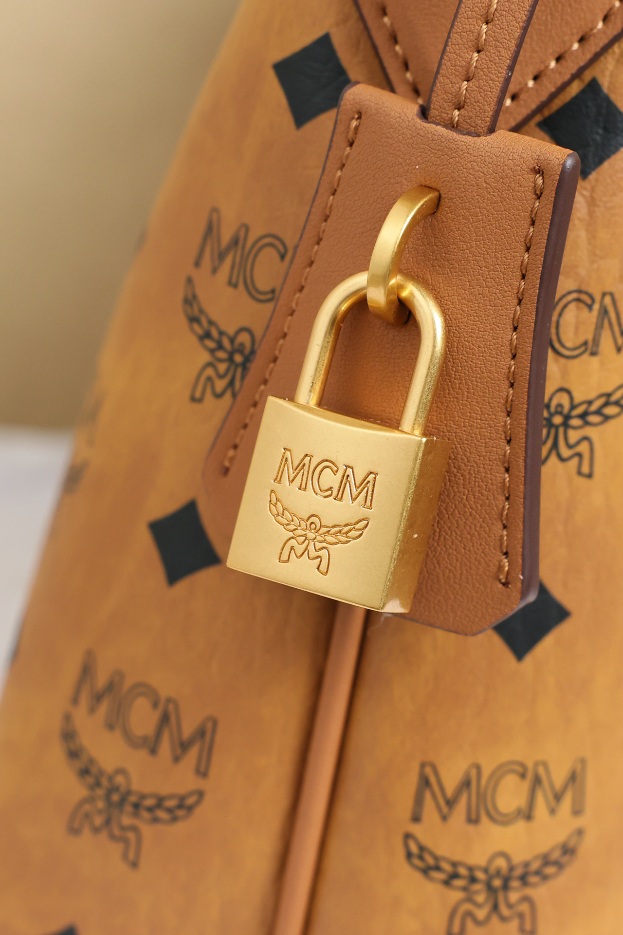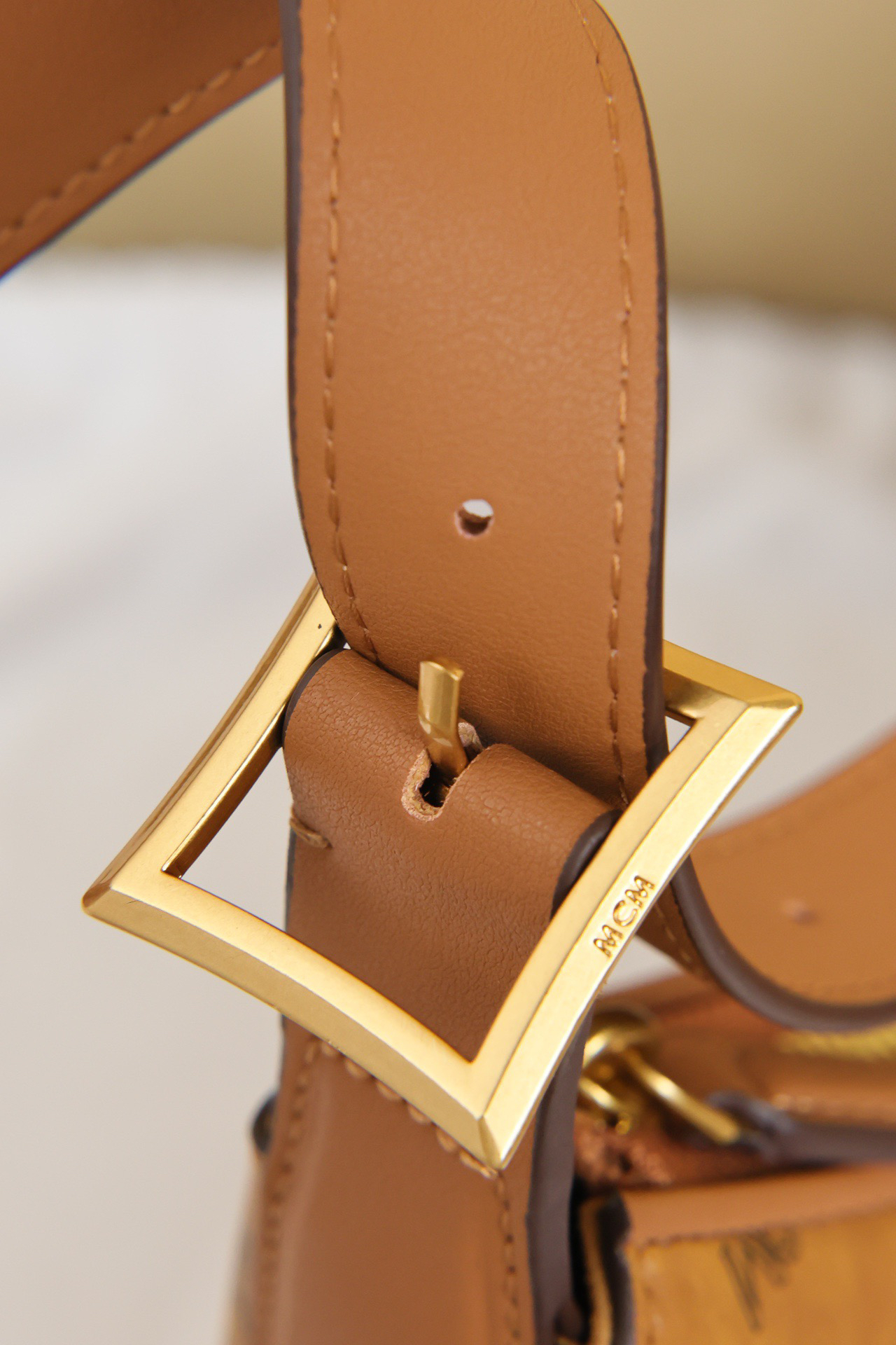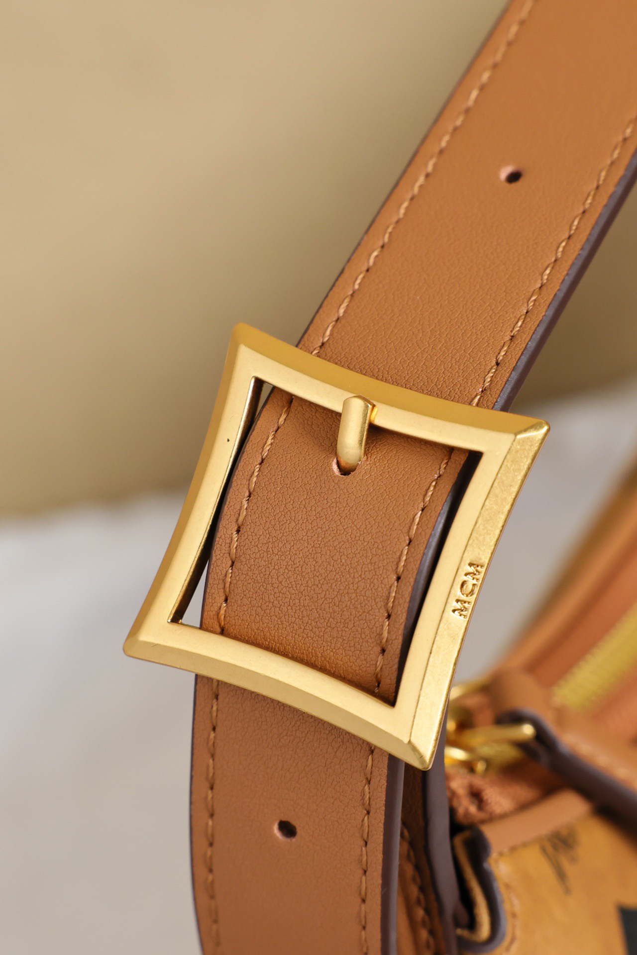 这款单品对经典的休闲款式进行了现代风的全新演绎,在柔软与挺阔之间取得了理想的平衡。这款小号Aren Hobo肩背包采用了传统MCM行李箱的设计元素,包括一个可拆卸皮革吊牌及雕花Logo挂锁,达到锦上添花的效果。