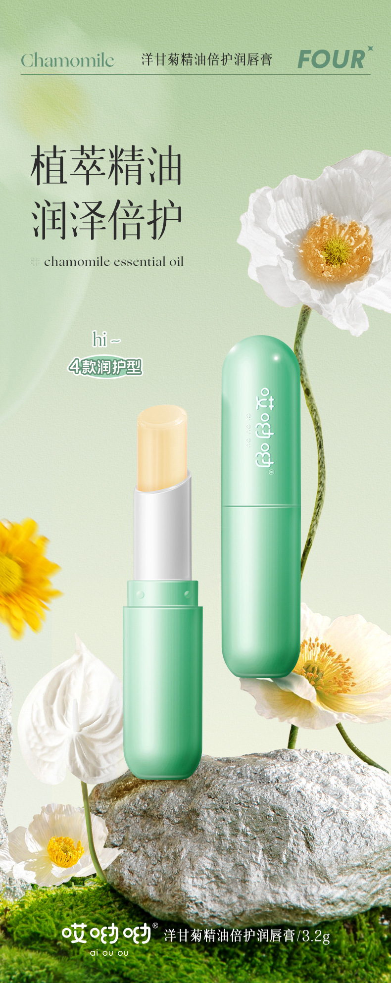 「9.9元包邮!四款可选」哎呦呦洋甘菊精油倍护润唇膏 改善干滋养深层滋润补水淡唇纹