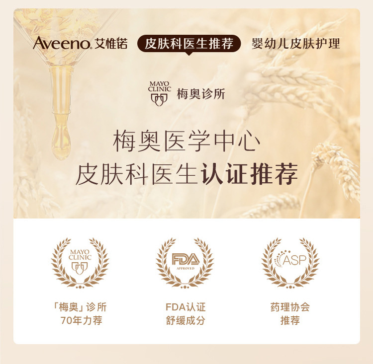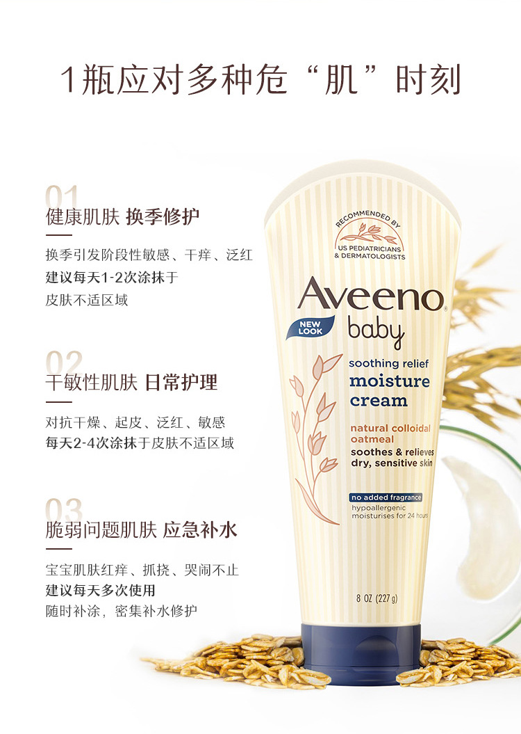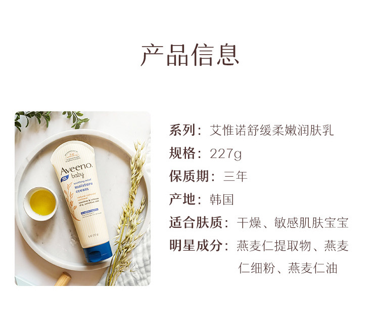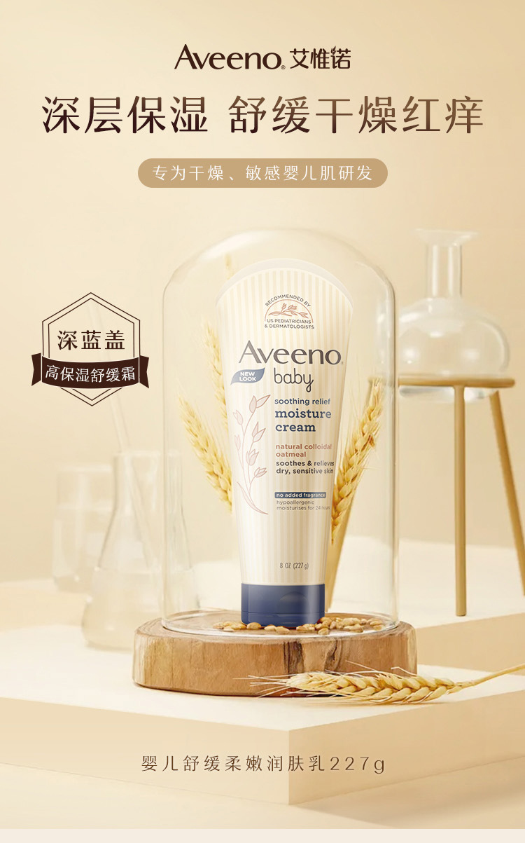 【保税仓】Aveeno/艾惟诺 燕麦婴儿保湿舒缓润肤霜 227g