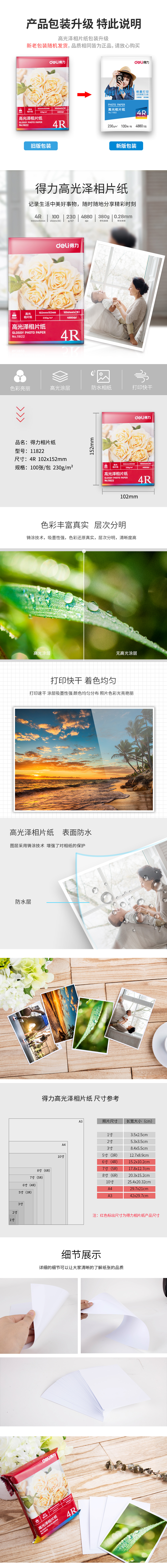 得力11822高光相片纸-4R-230g㎡(白)(100张盒)