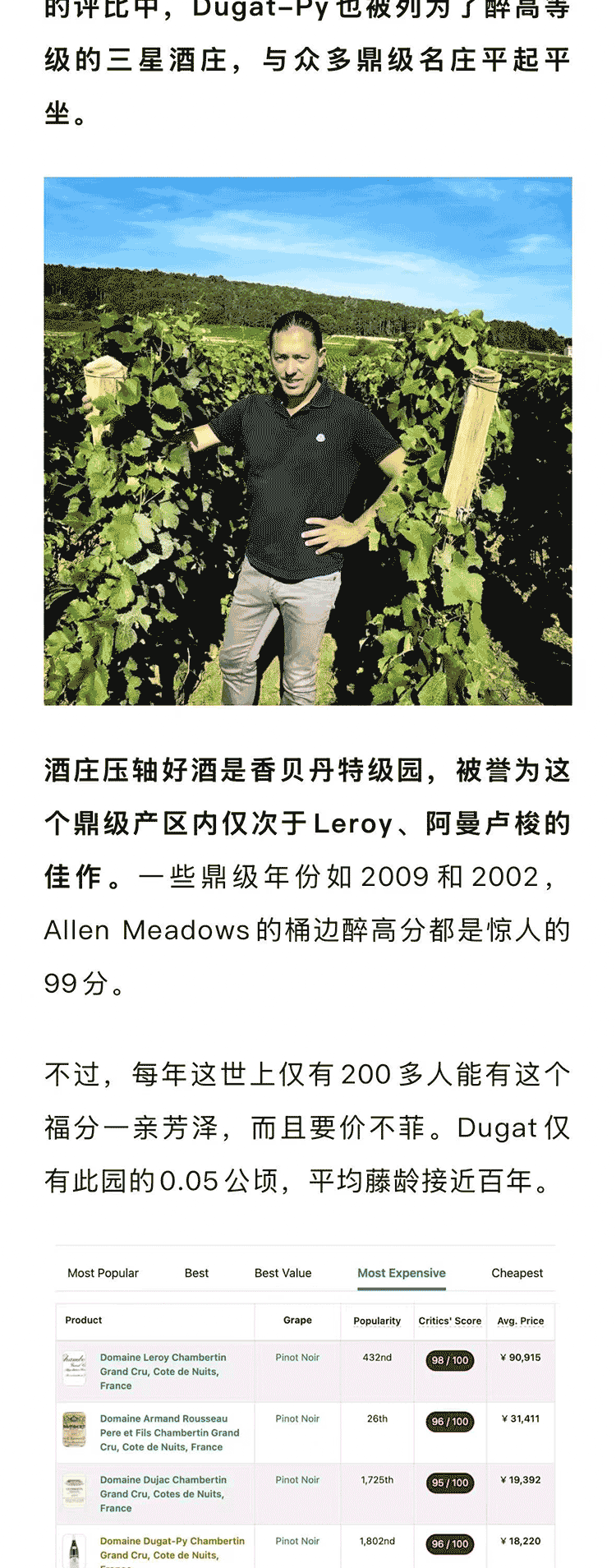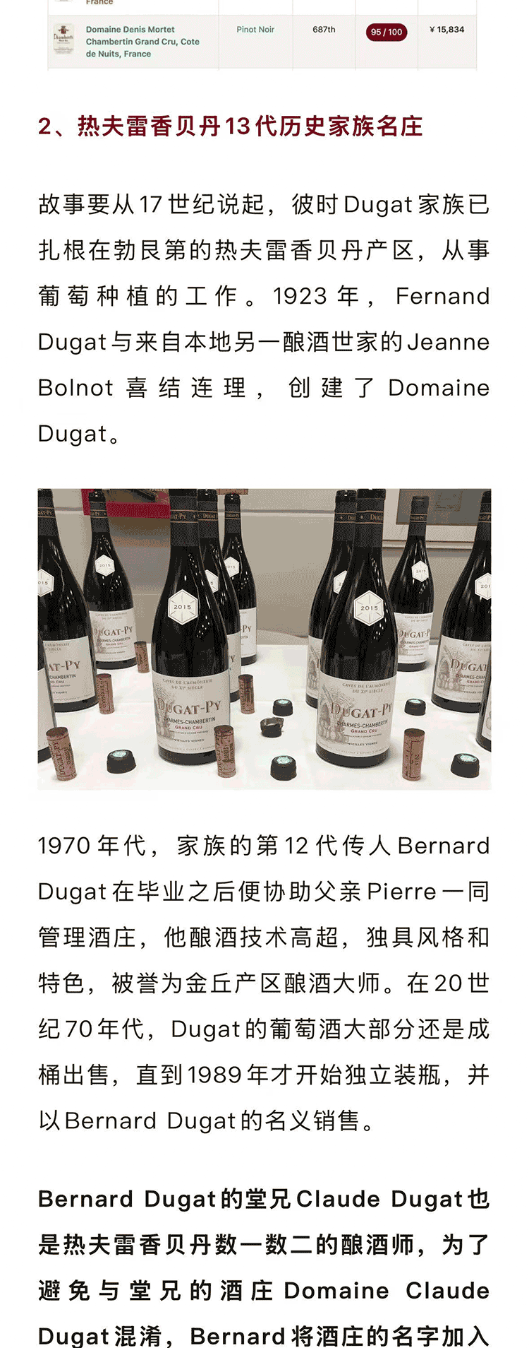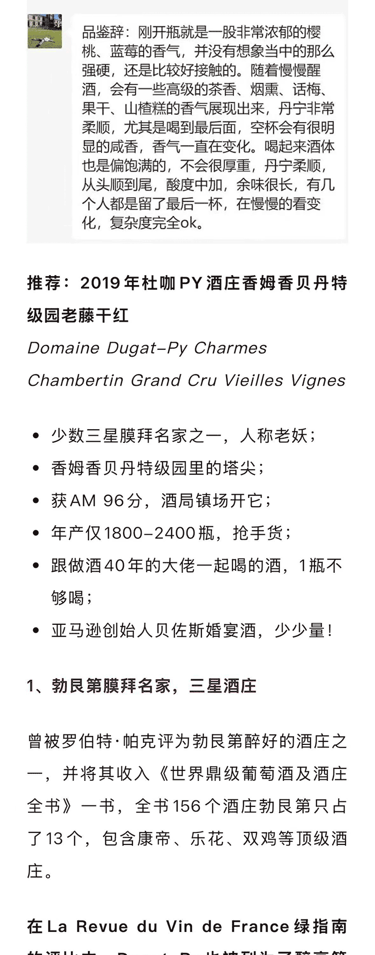 法国勃艮第2019年杜咖PY酒庄香姆香贝丹特级园老藤黑皮诺干红