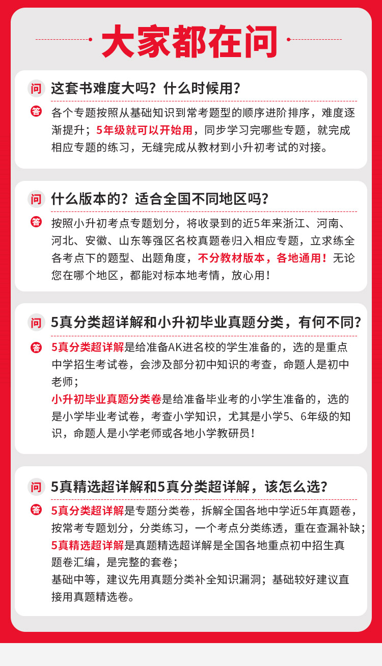 2026重点中学招生5年真题分类集训超详解语文数学英语小升初全国通用