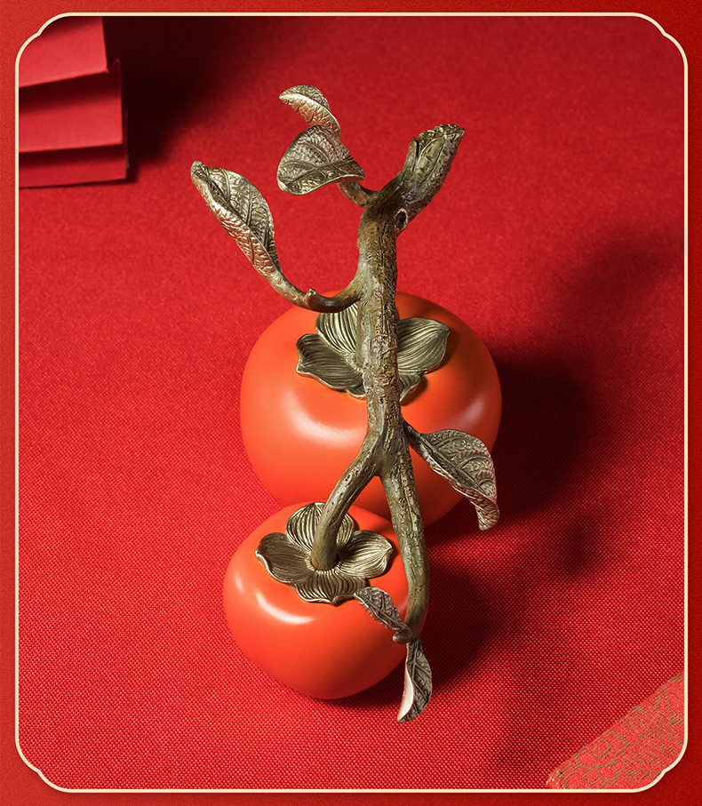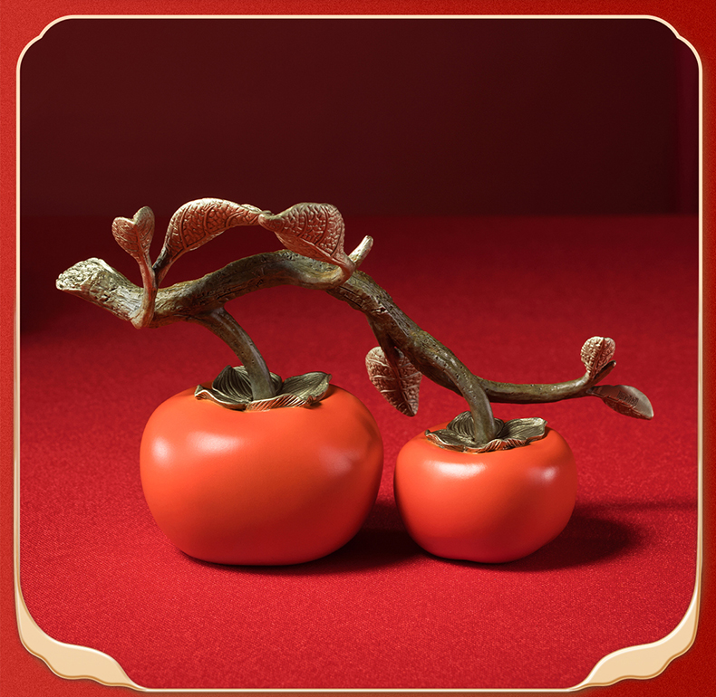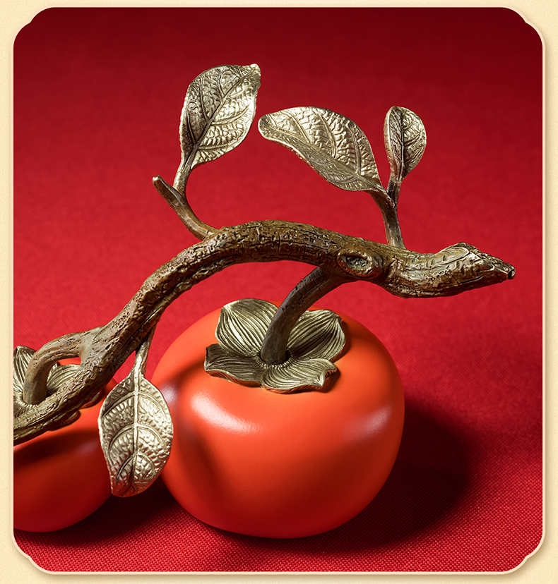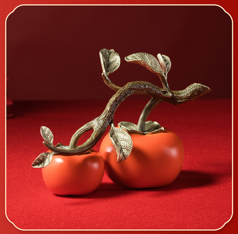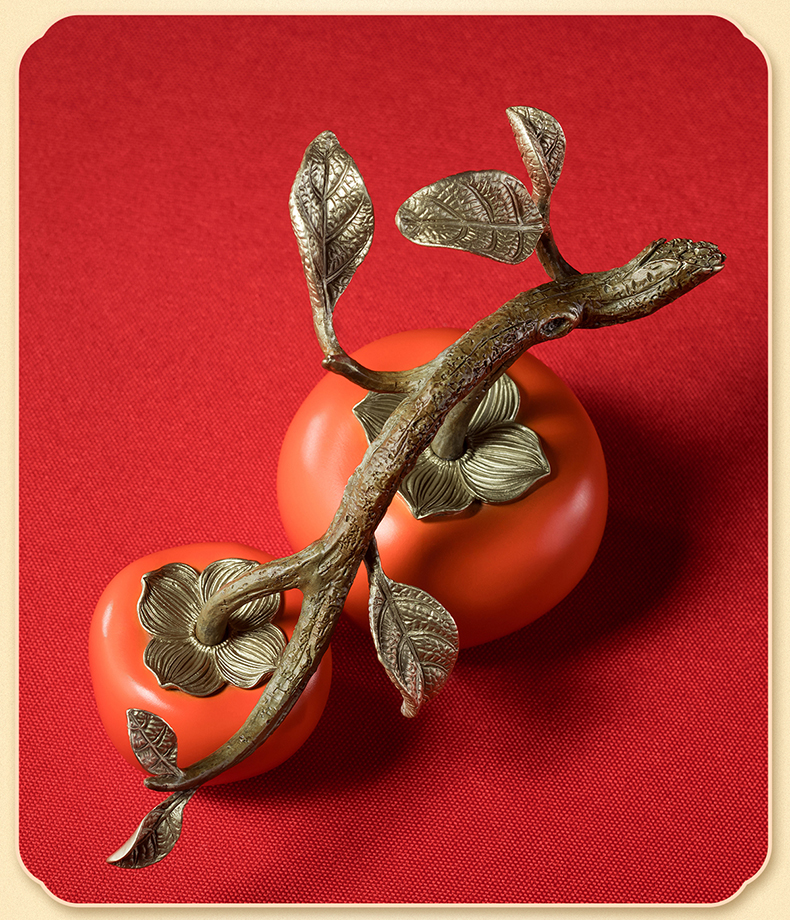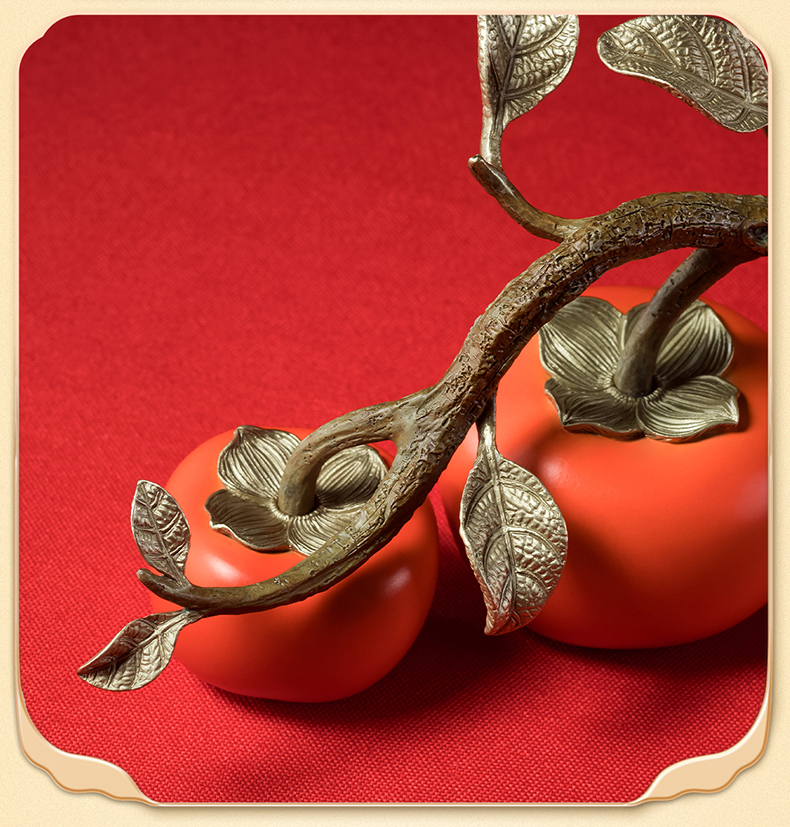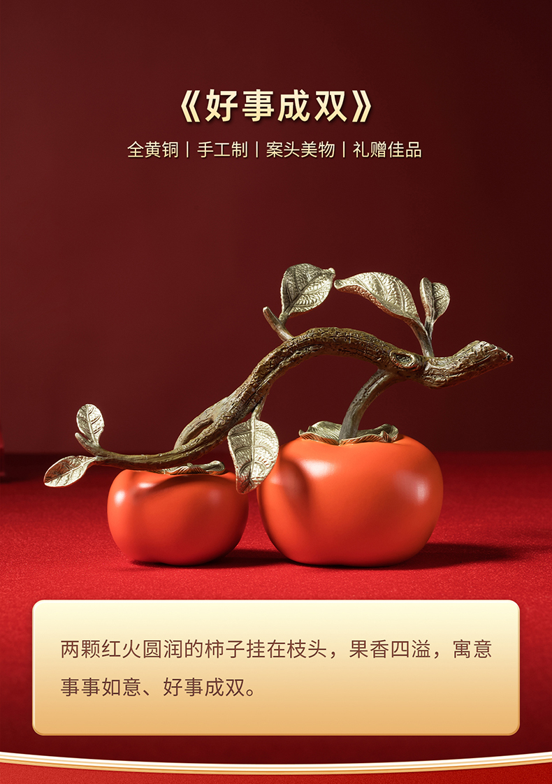 铜师傅《好事成双》客厅桌面铜柿子摆件 家居装饰品中秋节礼物