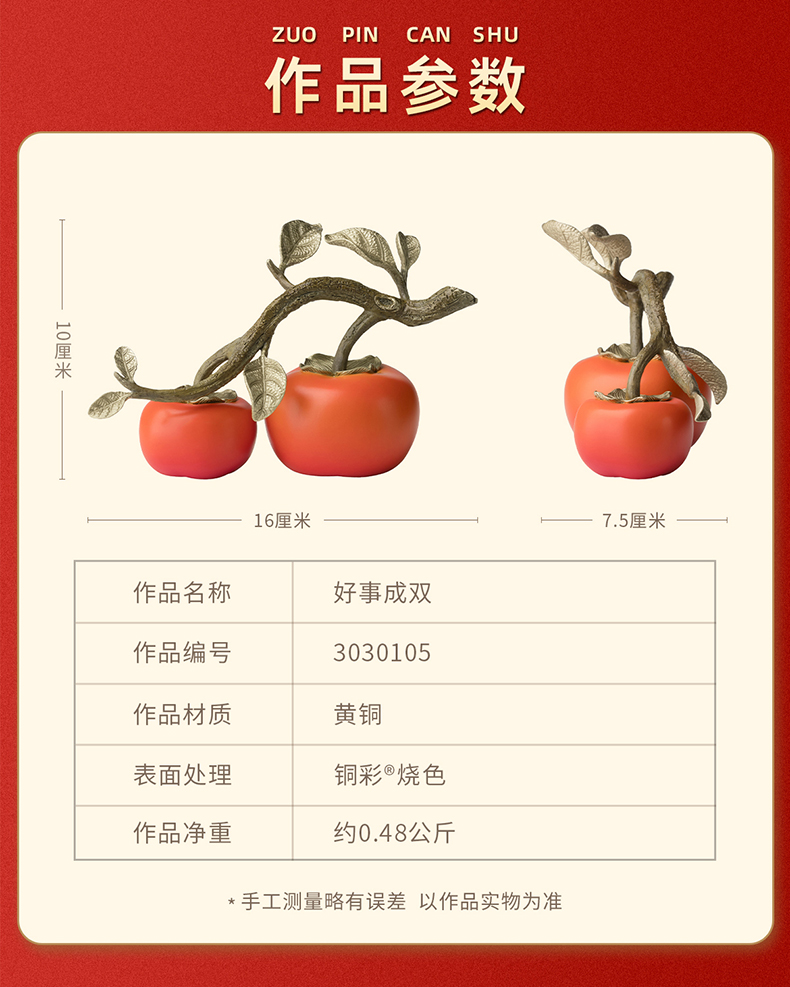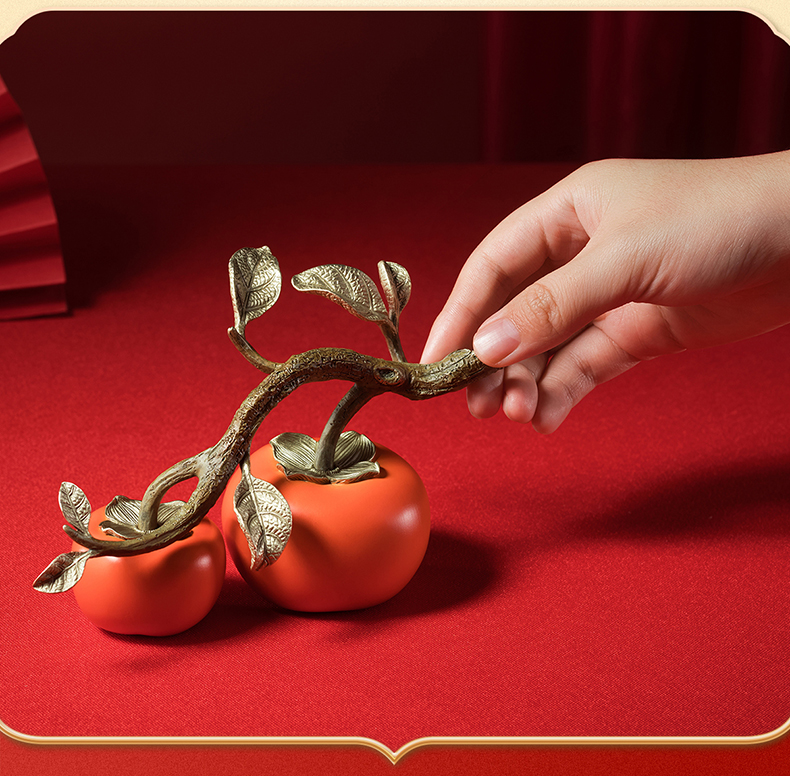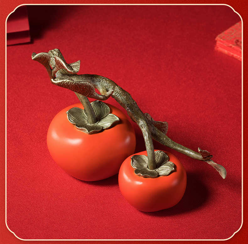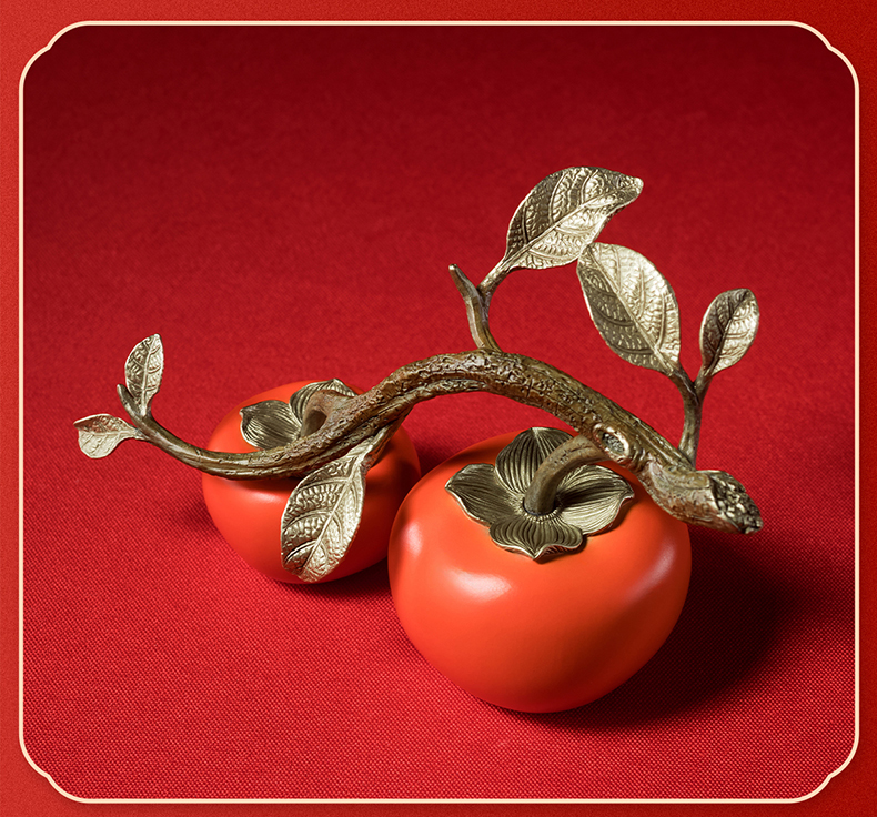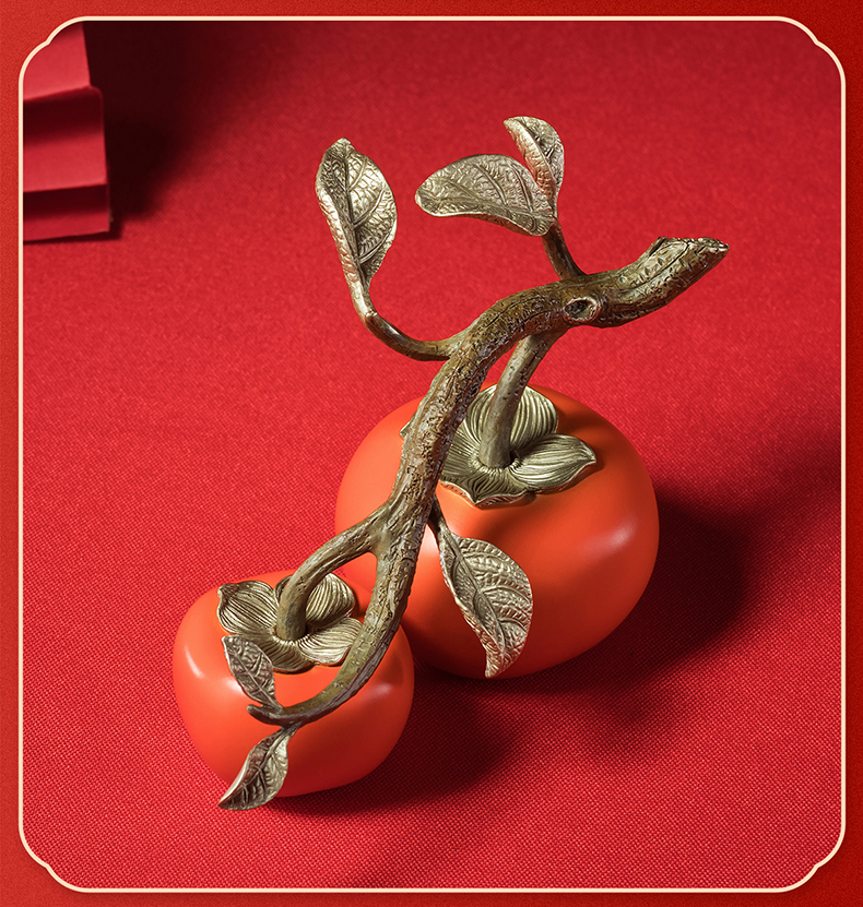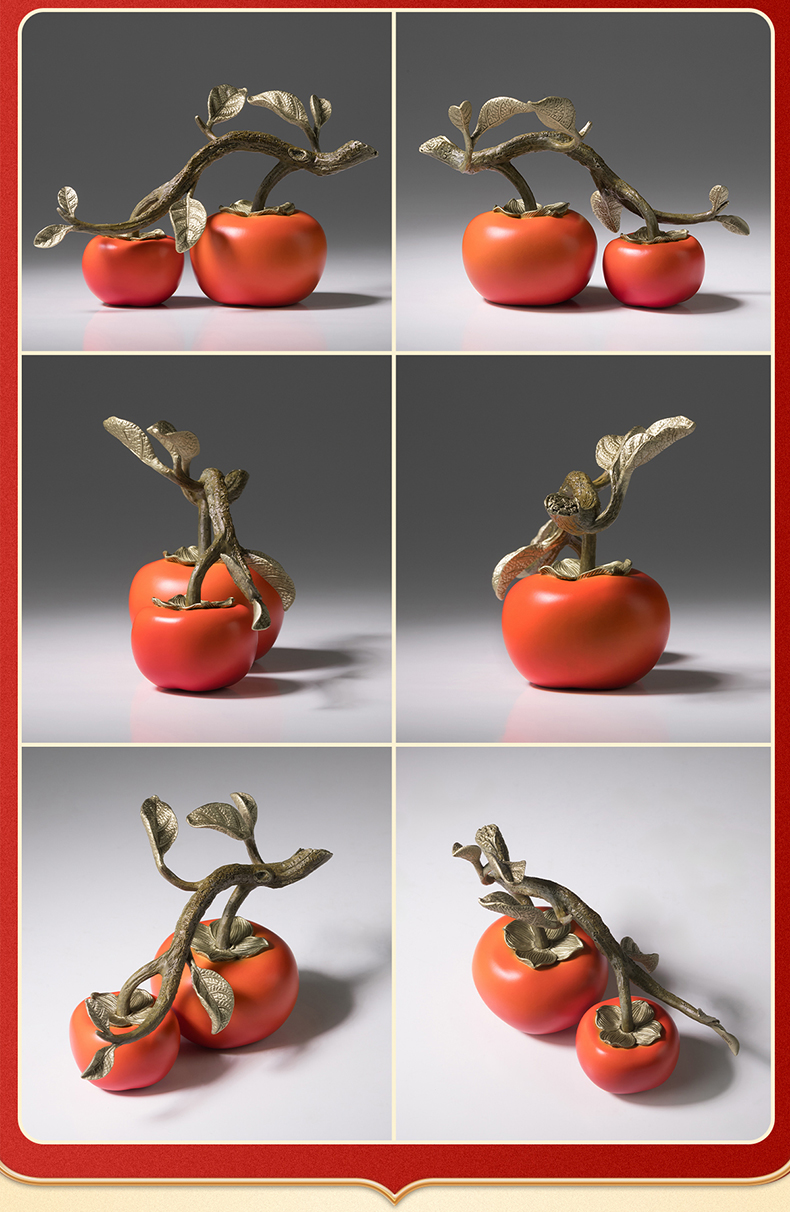 铜师傅《好事成双》客厅桌面铜柿子摆件 家居装饰品中秋节礼物