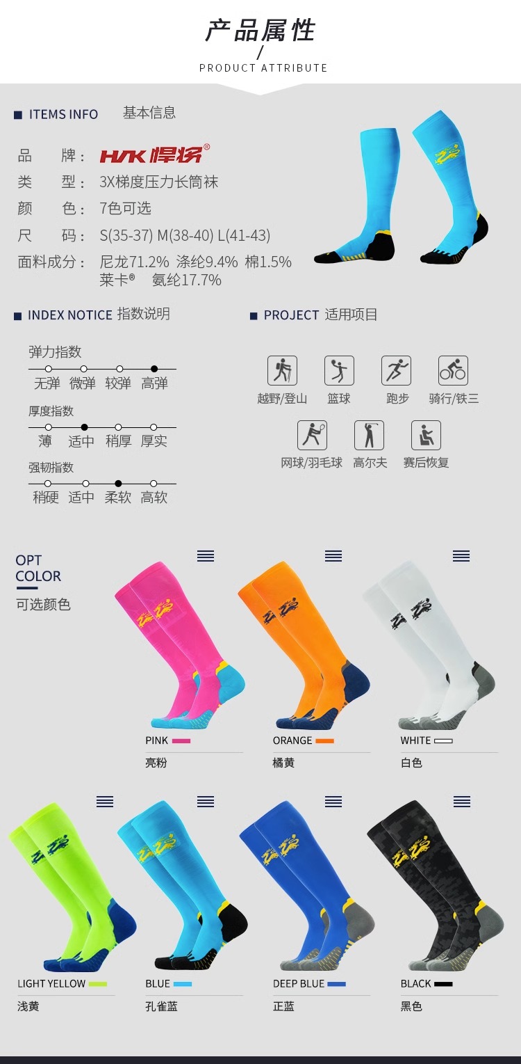 悍将压缩袜 劲跑专业梯度跑步袜阻汗入鞋 强支撑 抗疲劳 加快恢复