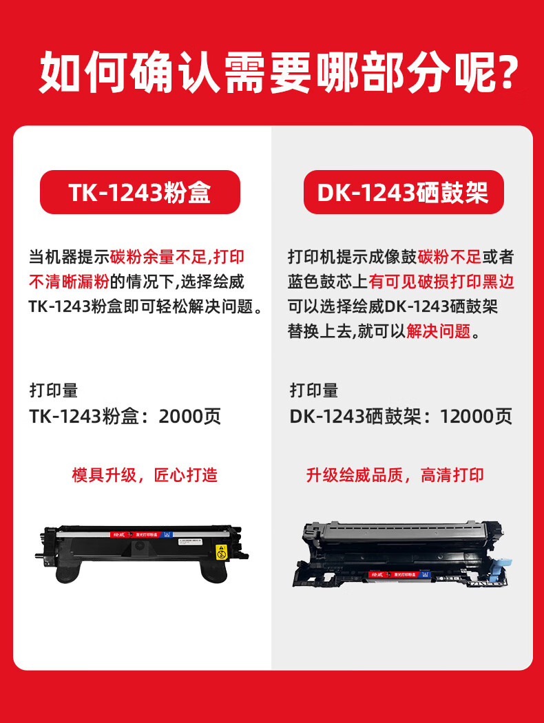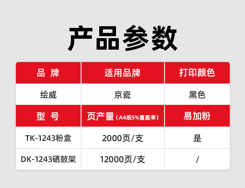 绘威TK-1243易加粉粉盒 适用京瓷Kyocera MA2000 MA200w PA2000 PA2000w打印机墨粉盒 墨盒