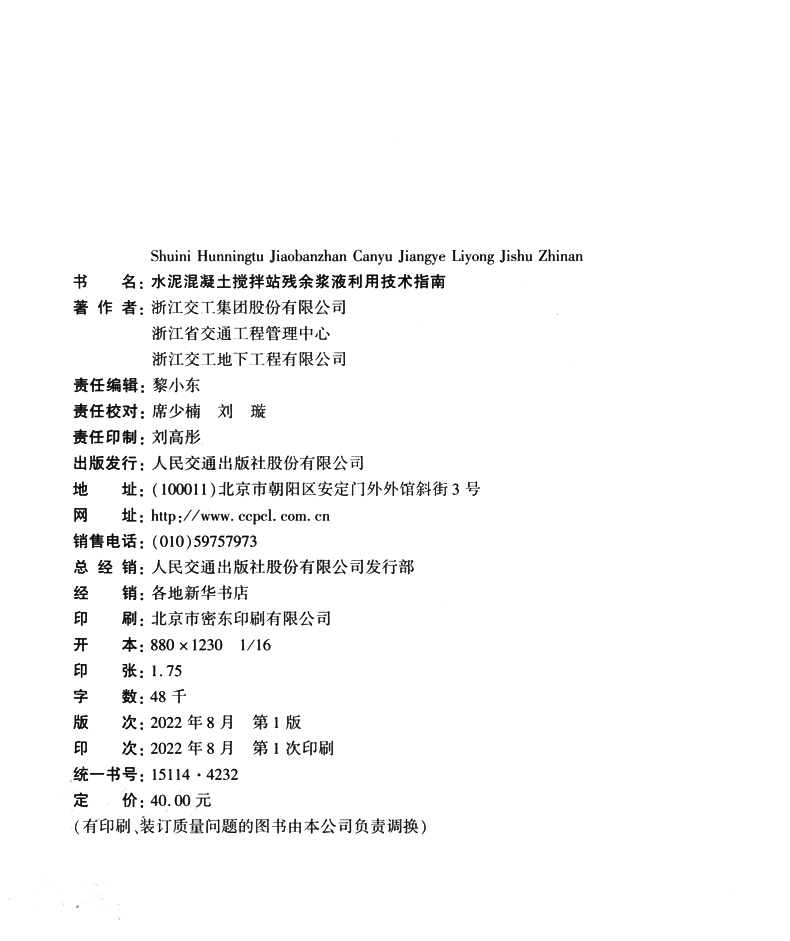书名:水泥混凝土搅拌站残余浆液利用技术指南