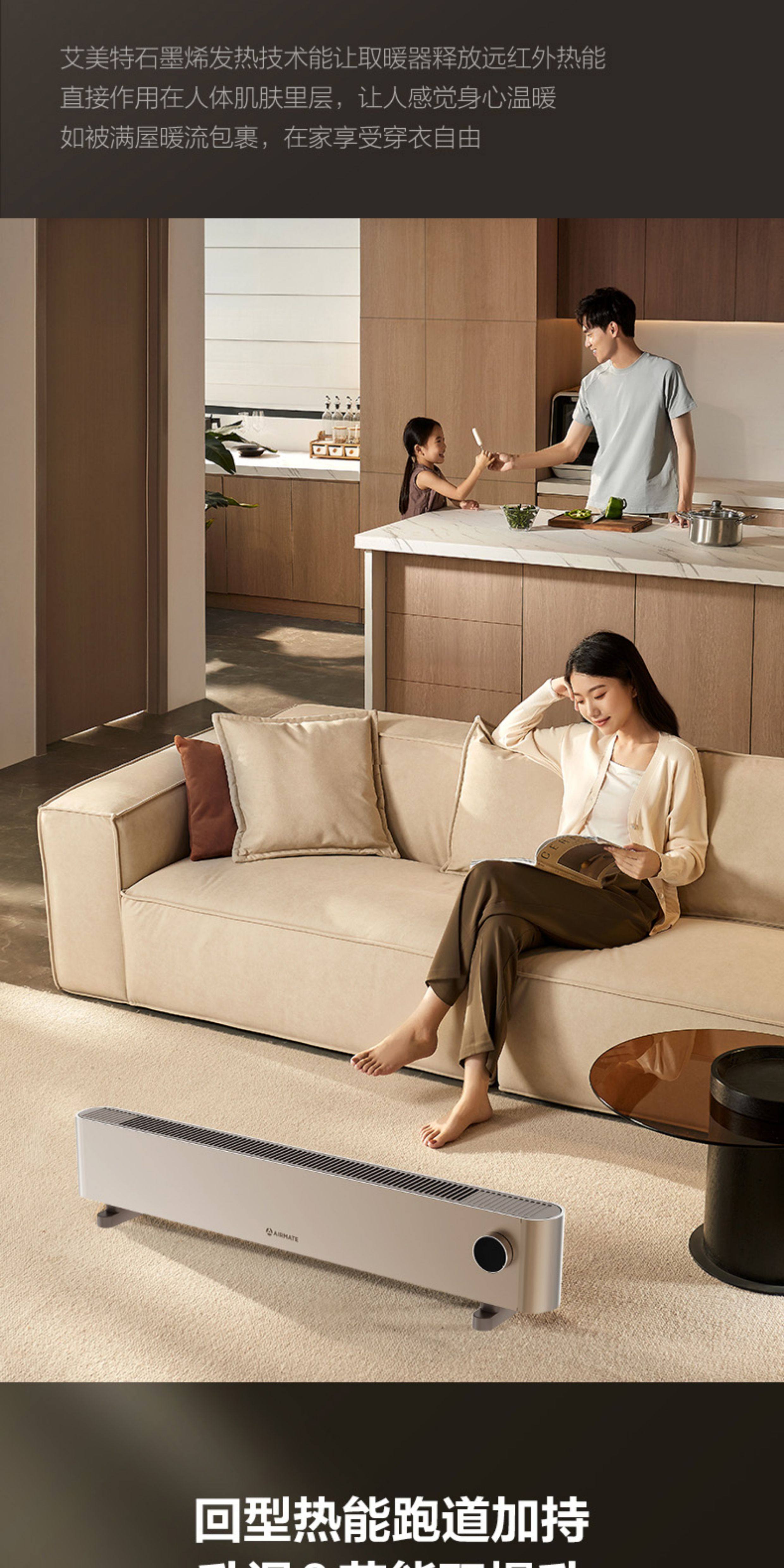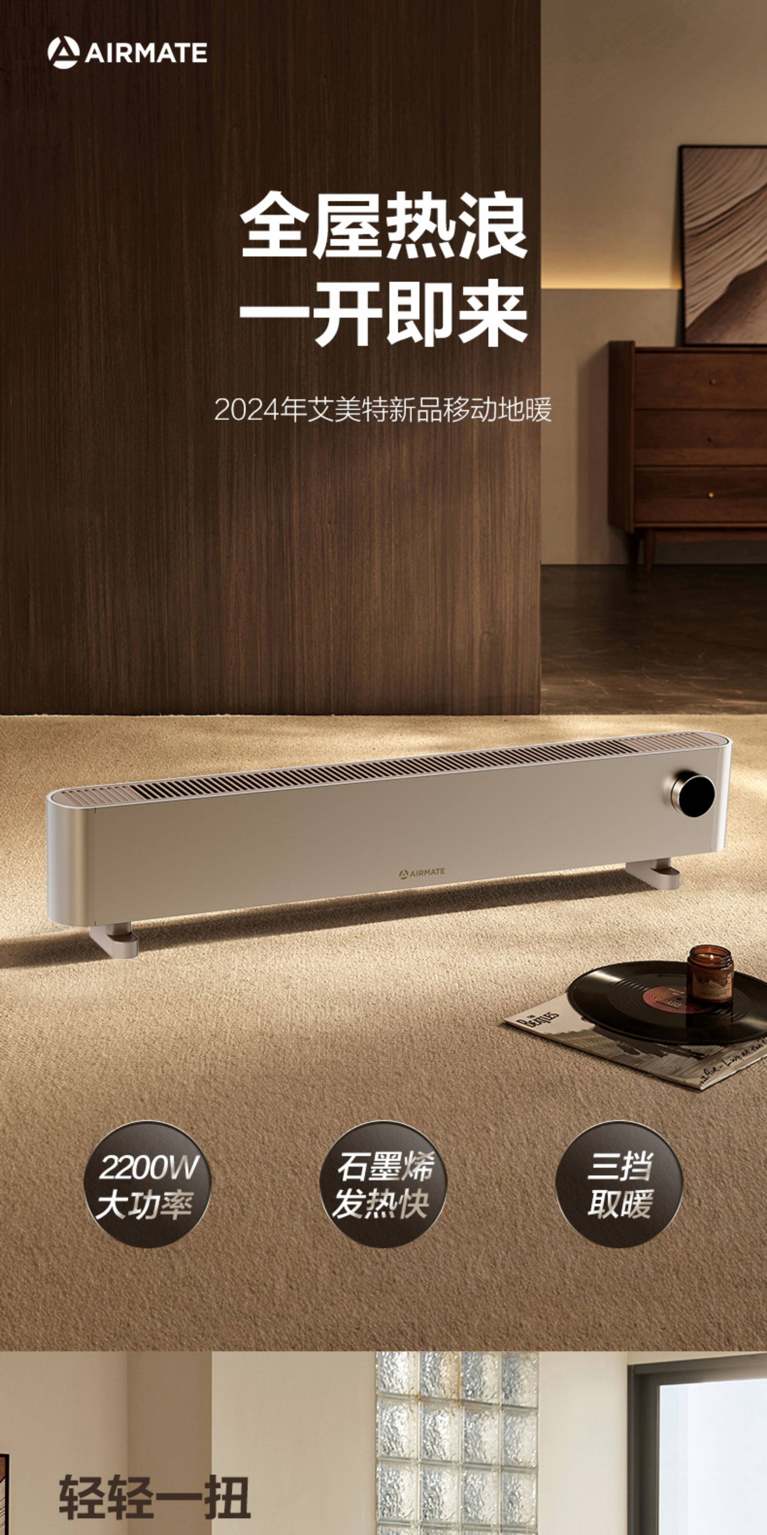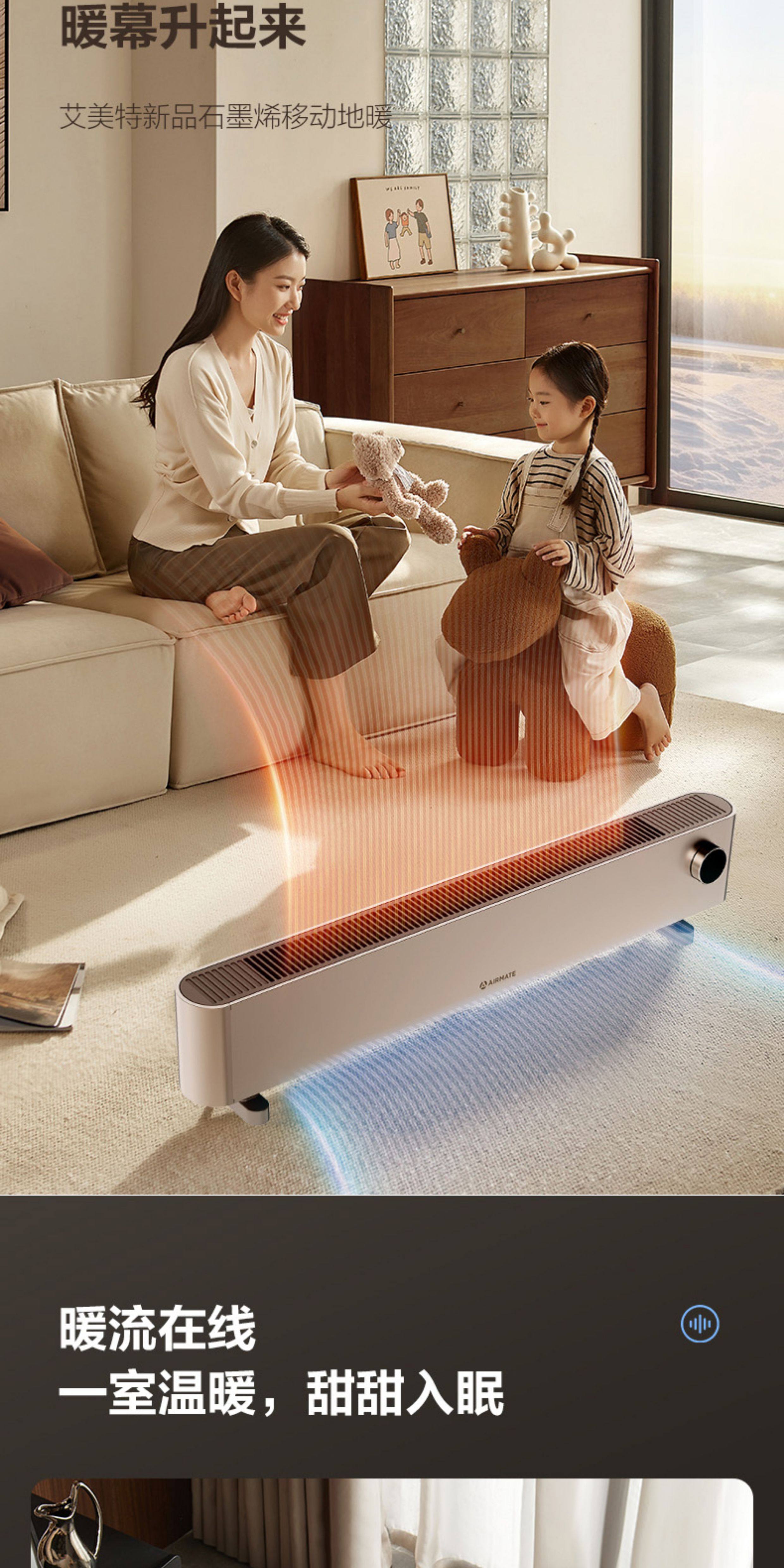 艾美特家用移动地暖踢脚线取暖器石墨烯手控电暖器卧式客厅速热电暖气HD22-K16