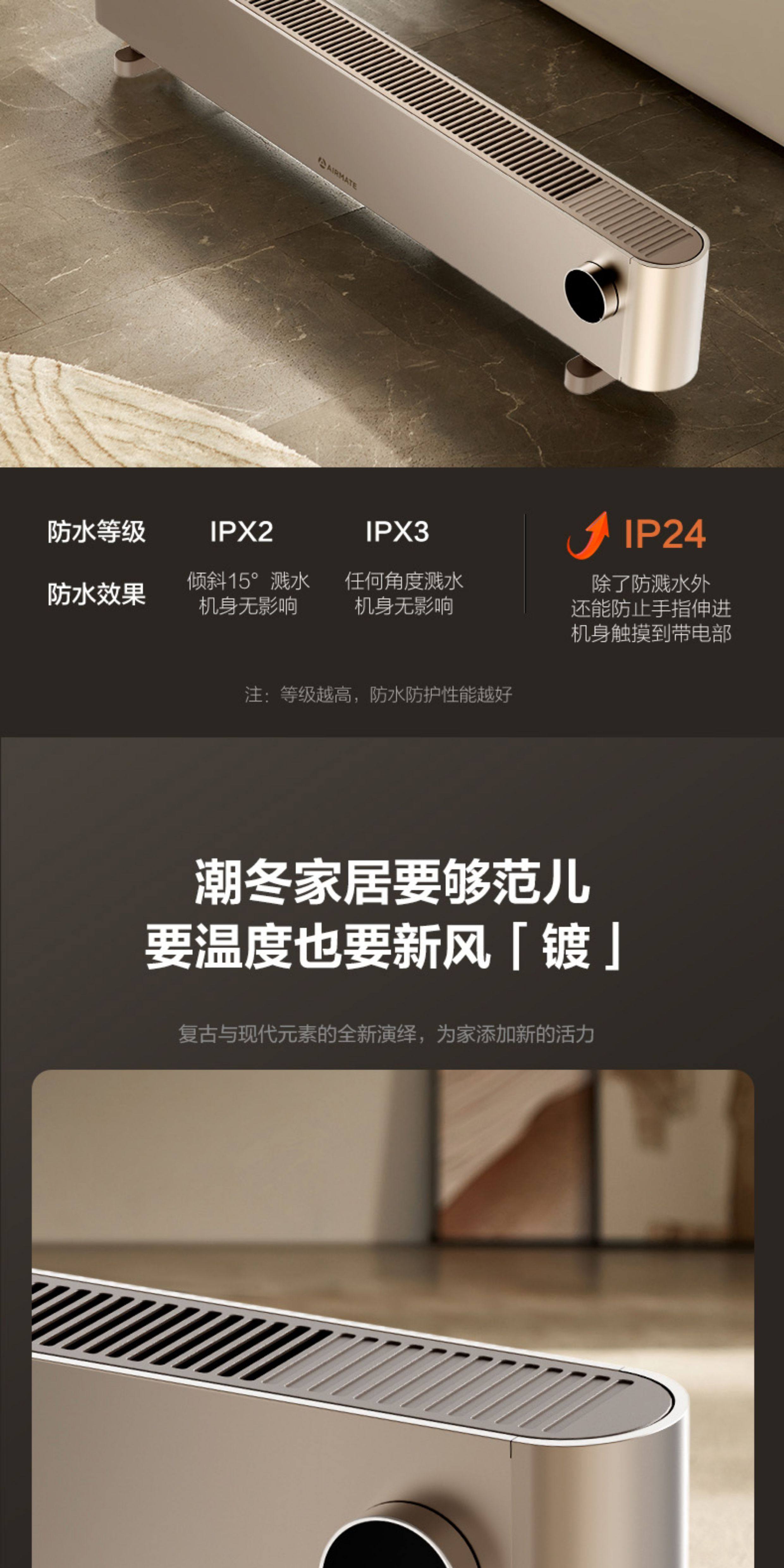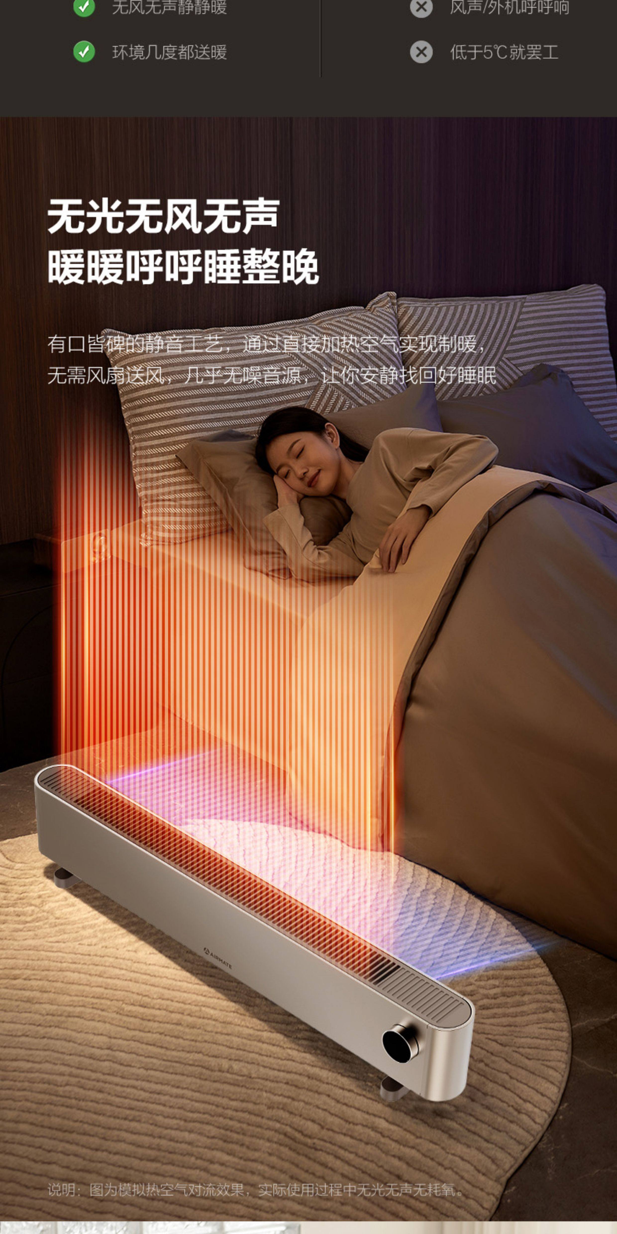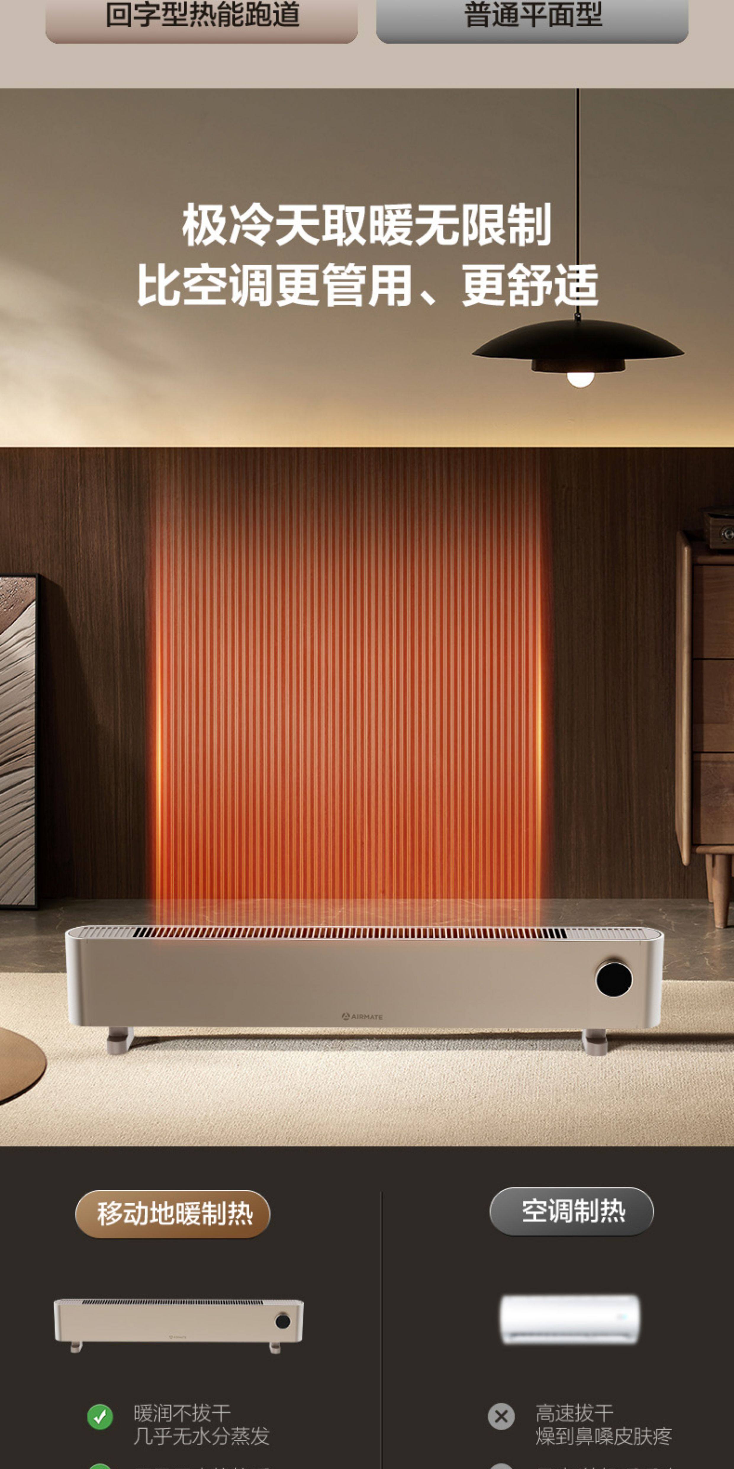 艾美特家用移动地暖踢脚线取暖器石墨烯手控电暖器卧式客厅速热电暖气HD22-K16