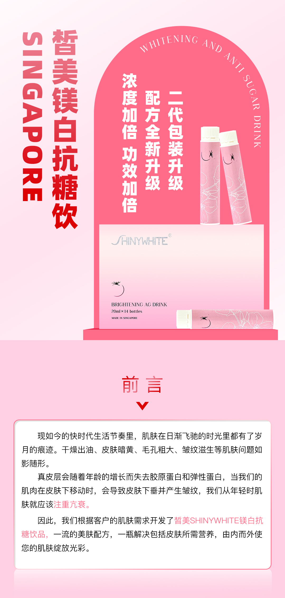 【新升级】【白番茄 焕白 紧致 提亮】 胶原镁白亢糖饮 14瓶/盒 新加坡SHINYWHITE 有效期到26年6月