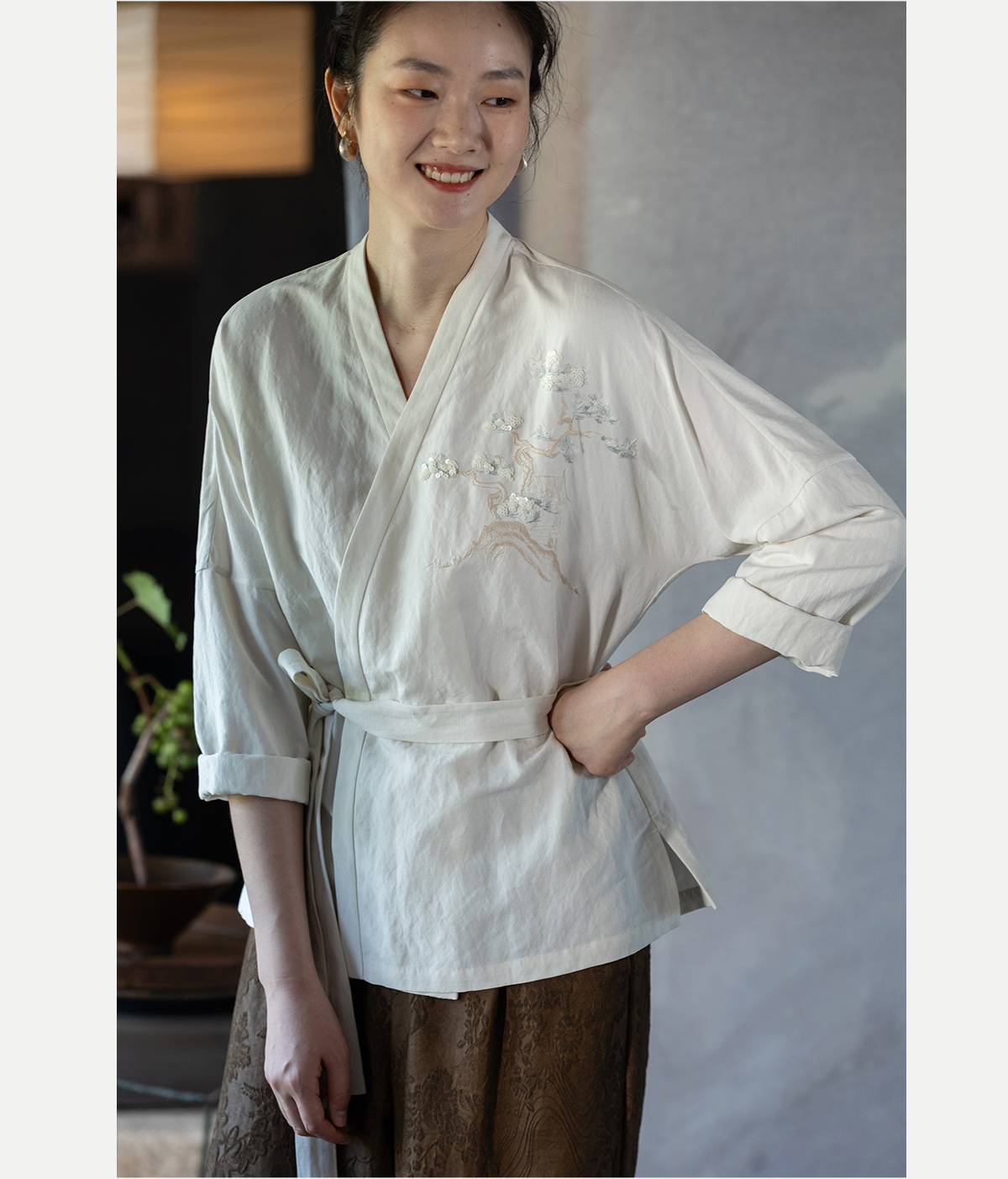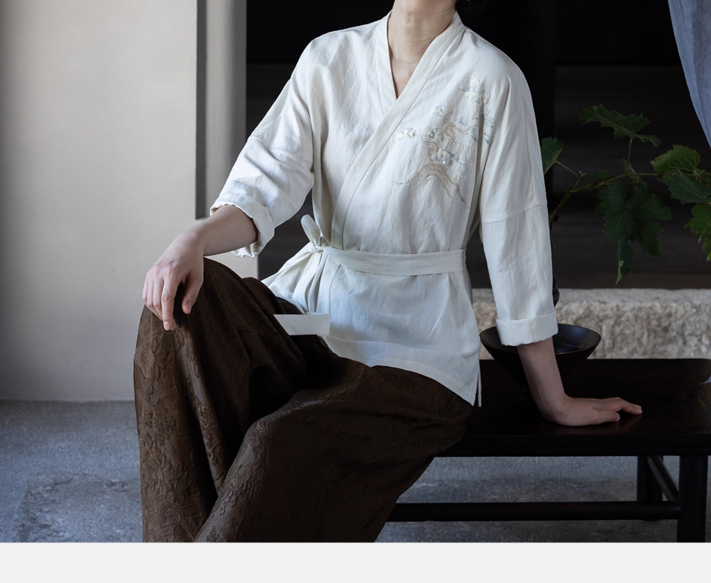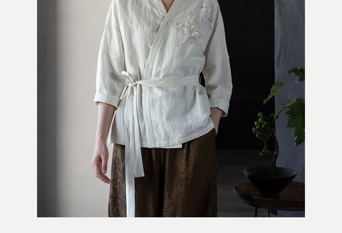 牧衣游原创 重磅39姆米丝麻手工刺绣外套东方文雅白色开衫 俗无忧