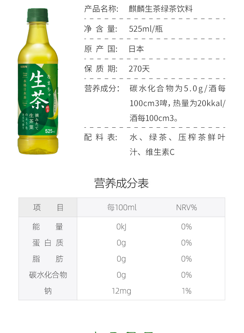 绮丽 香浓绿茶味饮料 赏味期限(2023.3.30)