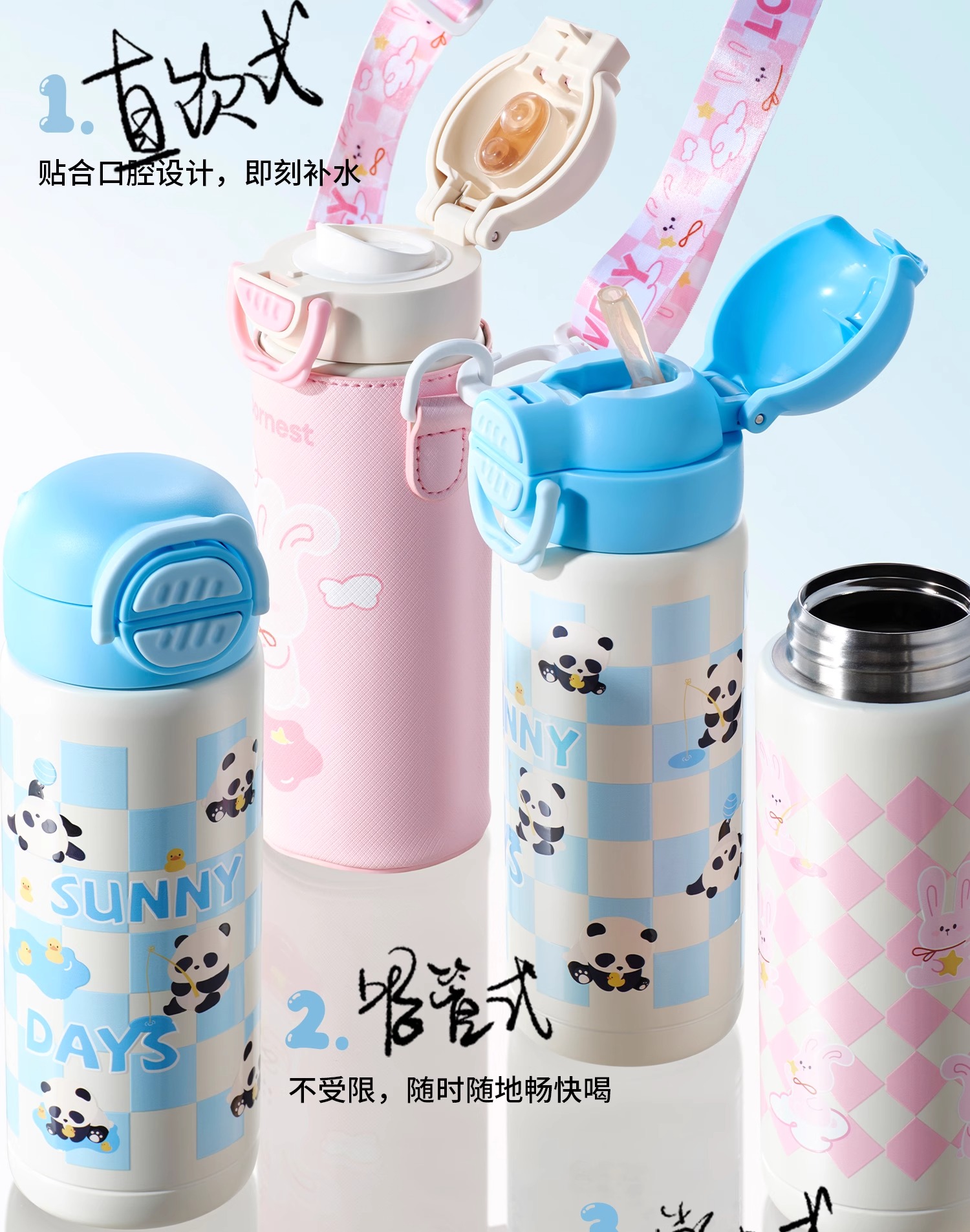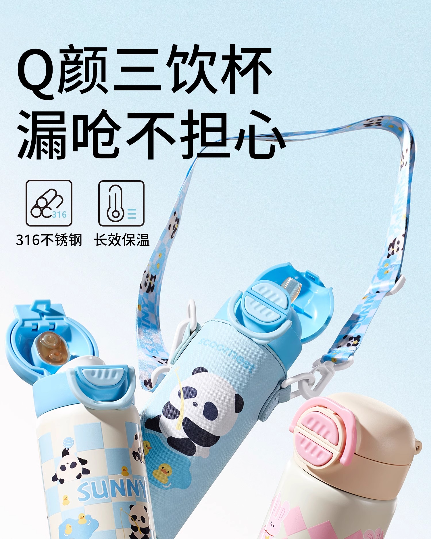科巢儿童保温杯吸管杯直饮水杯316大小学生宝宝婴幼儿园水壶专用