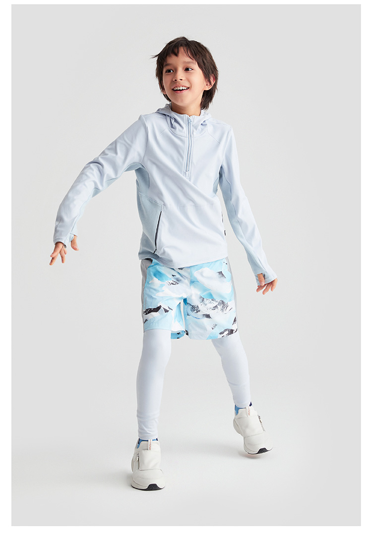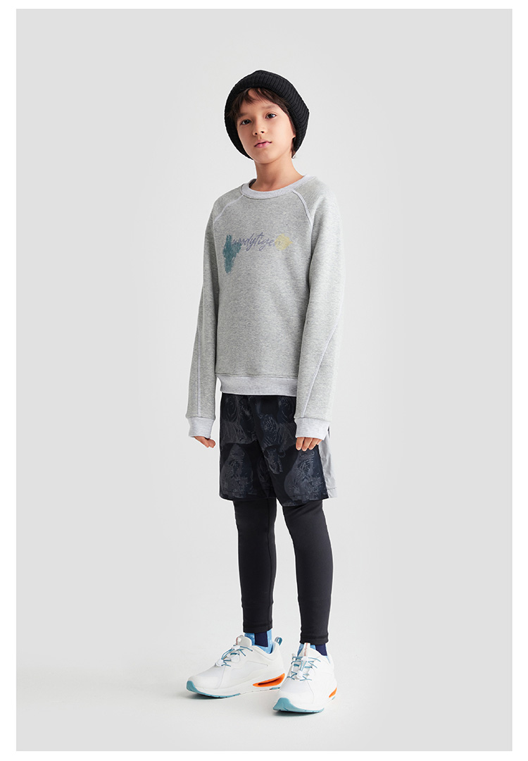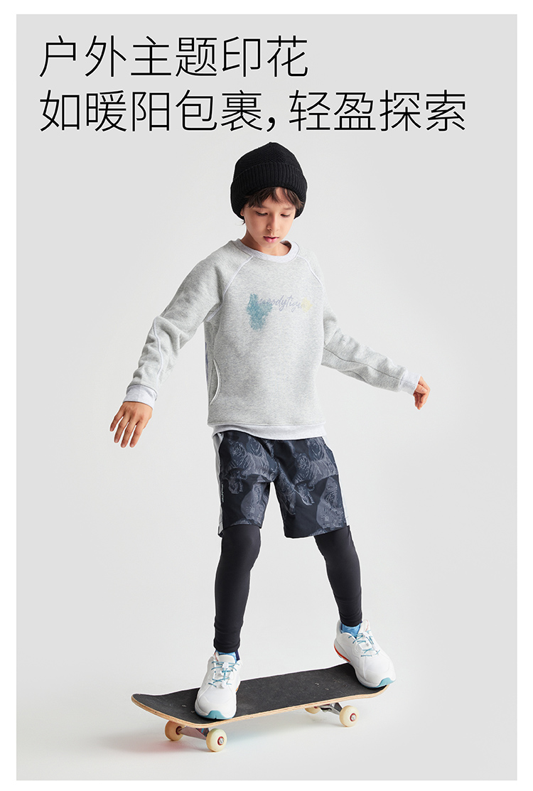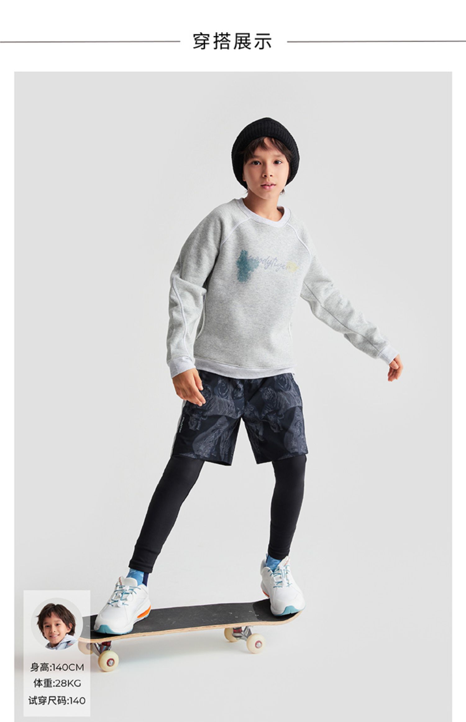 moodytiger男童假两件裤2022冬新款印花加绒保暖运动裤| 小暖阳 M24111502