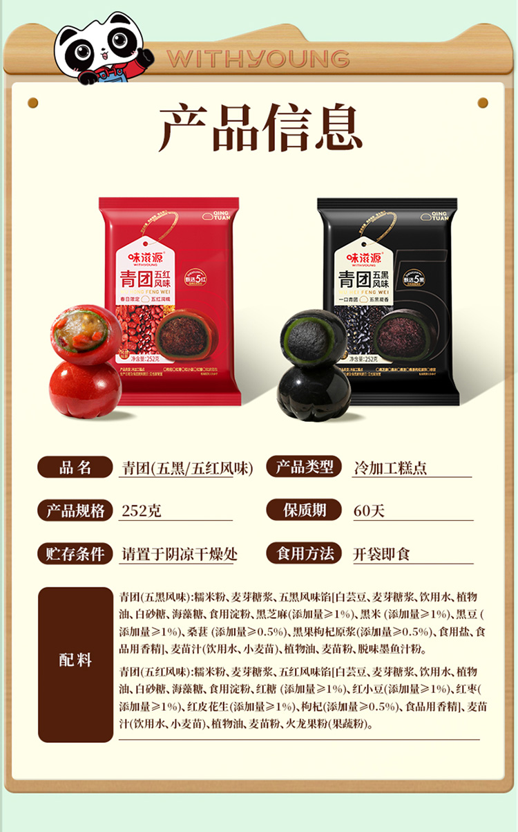 味滋源丨青团五红风味/五黑风味 252g*3袋