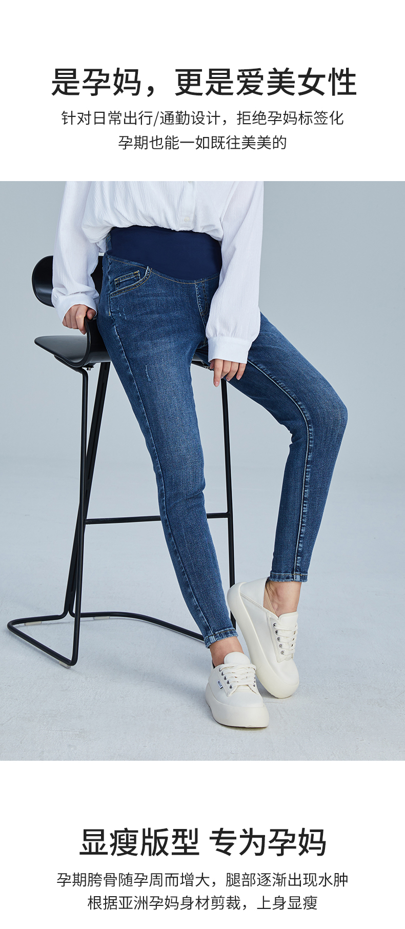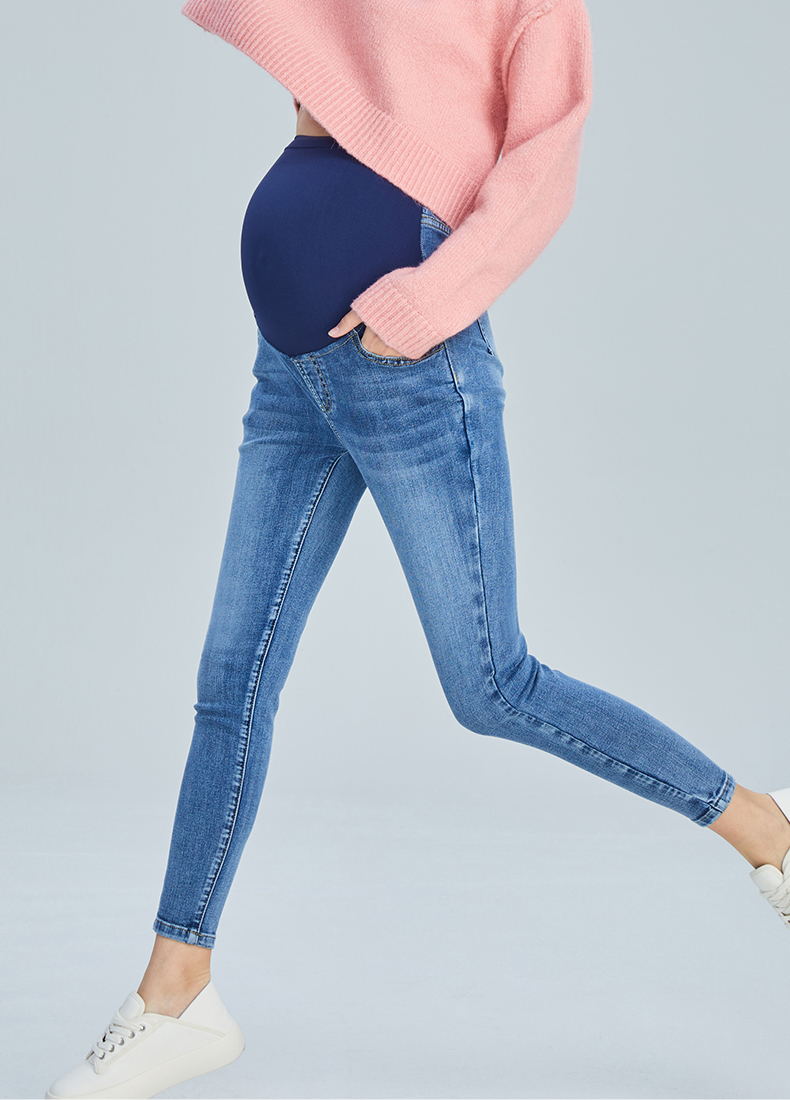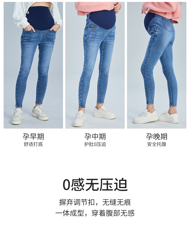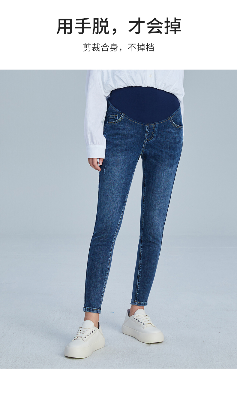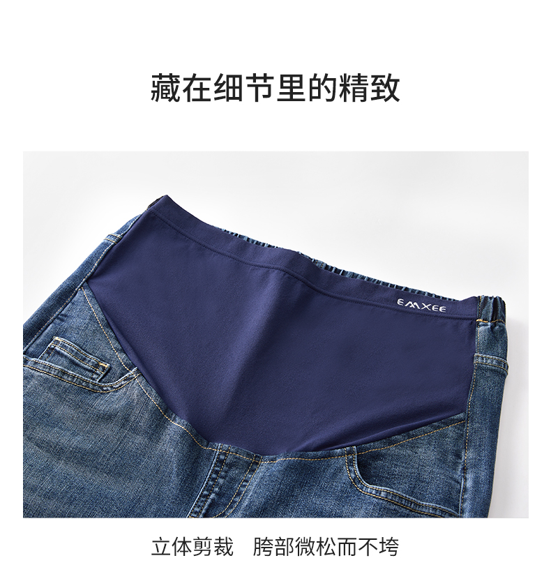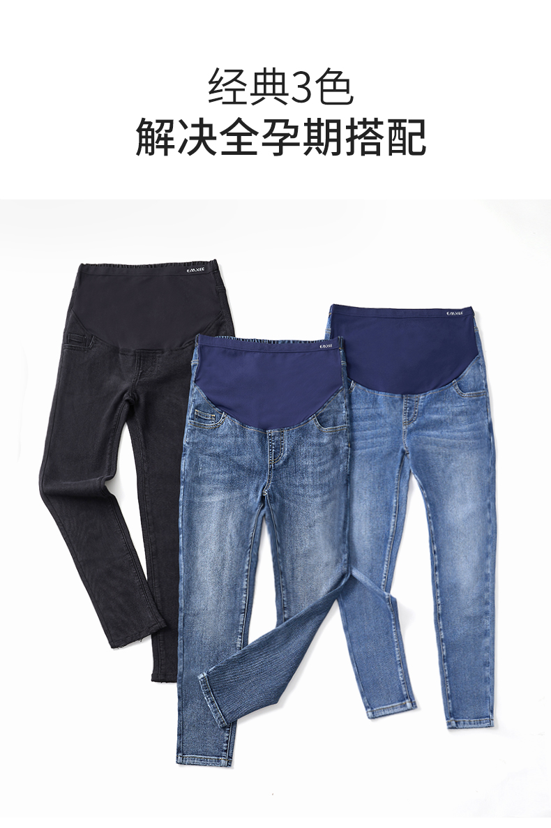 嫚熙孕妇牛仔裤春秋款时尚外穿潮辣妈九分春夏装怀孕期托腹裤小脚