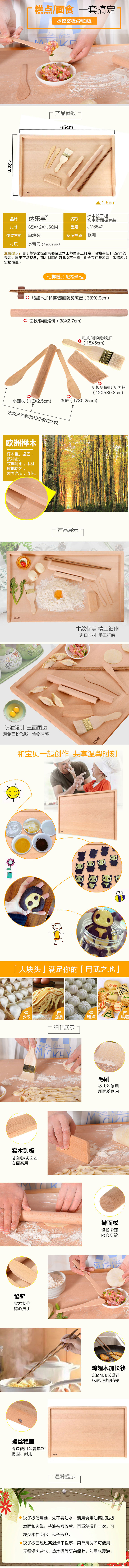 达乐丰榉木擀面板家用和面板无漆无蜡实木饺子板套装65*42*1.5cm