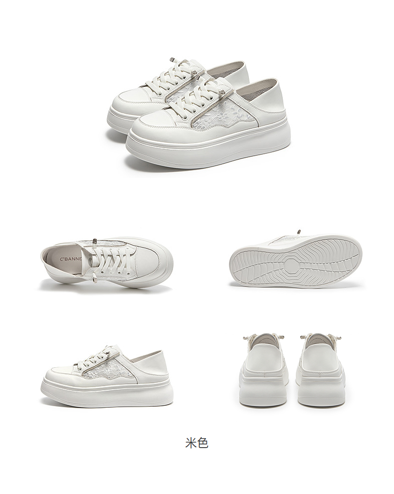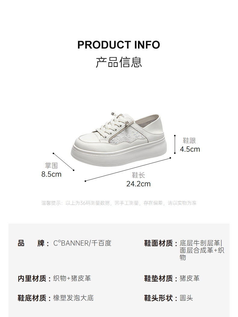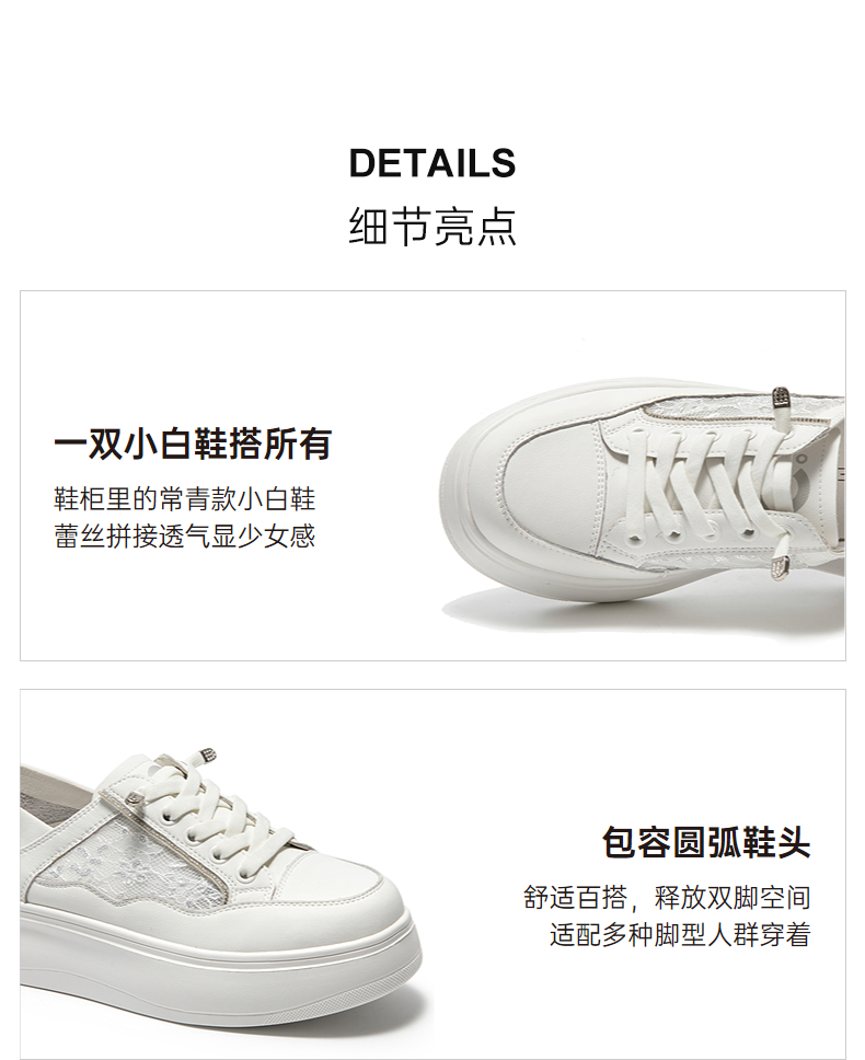 千百度蕾丝轻便休闲板鞋小白鞋女厚底增高运动休闲鞋A25327001