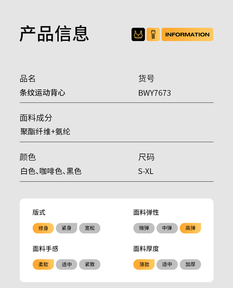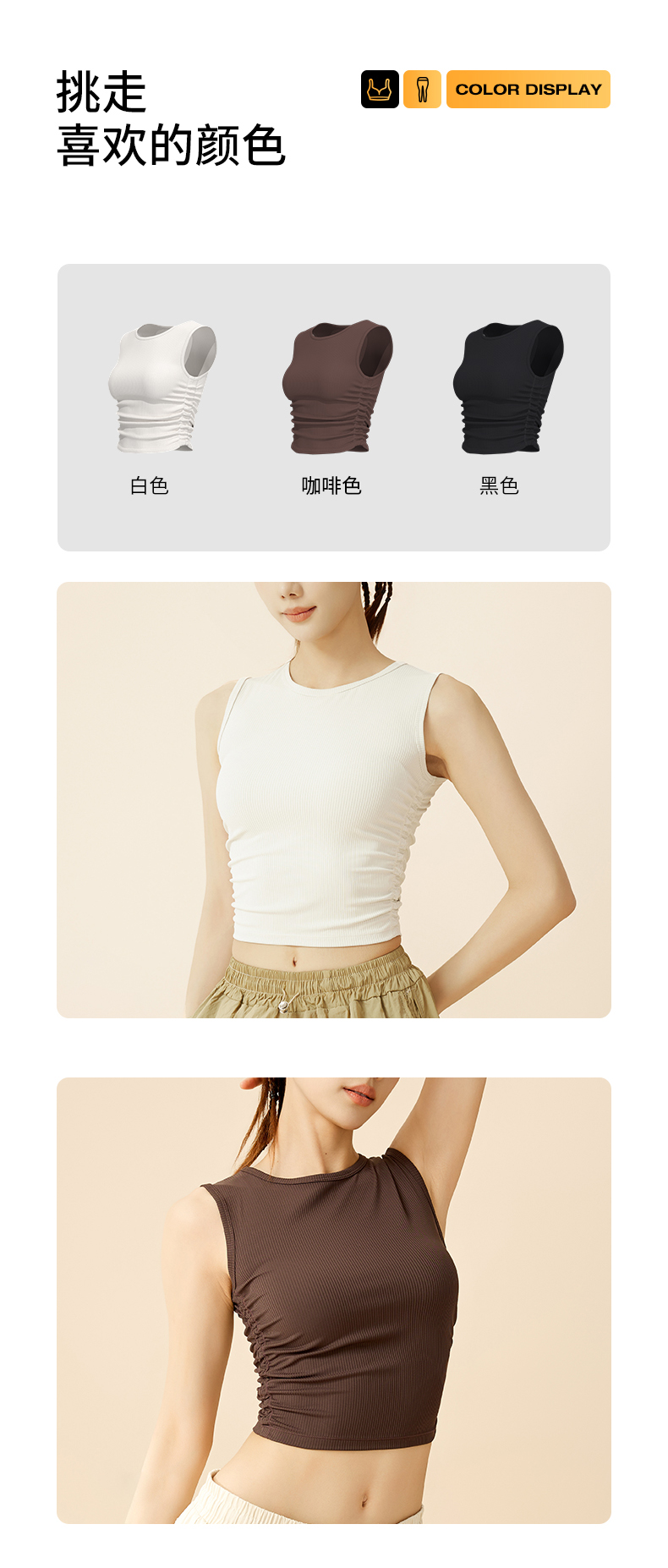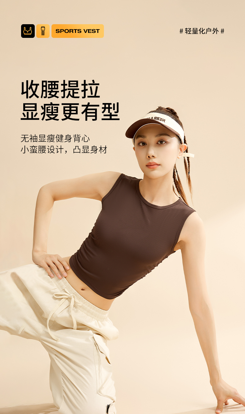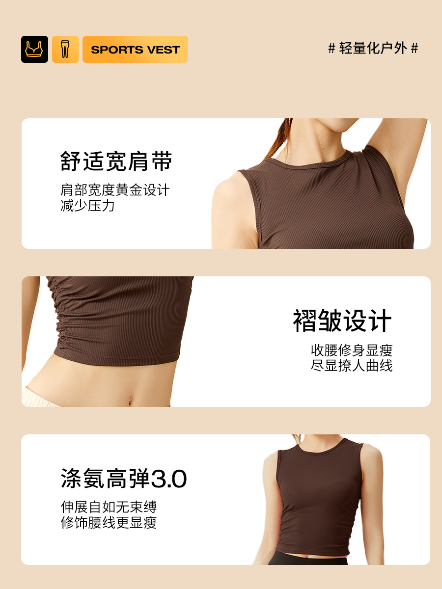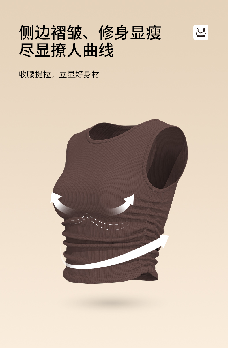 BWELL侧边褶皱螺纹运动背心BWY7673