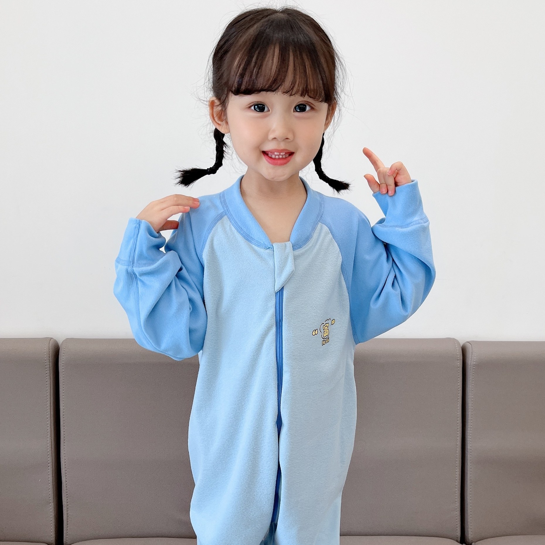三头品牌雕花拉头!裆部可以打开,不用脱衣服就能换尿布,后面加高拉链设计,女宝上厕所也非常方便!大点的宝贝把尿也很方便哦!