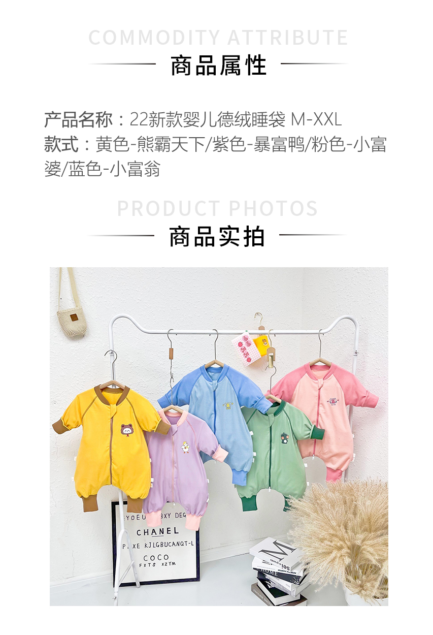【限时折扣】22新款婴儿德绒睡袋 (黄色-熊霸天下/紫色-暴富鸭/粉色-小富婆/蓝色-小富翁)M-XXL