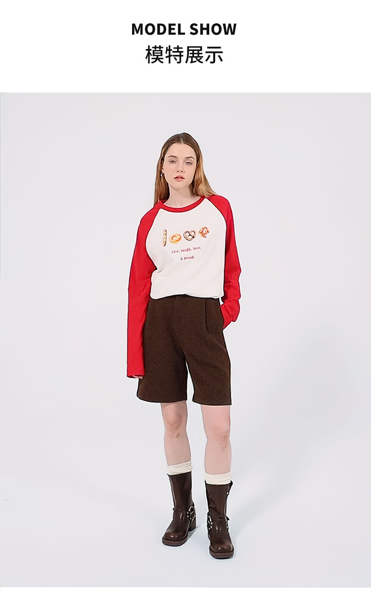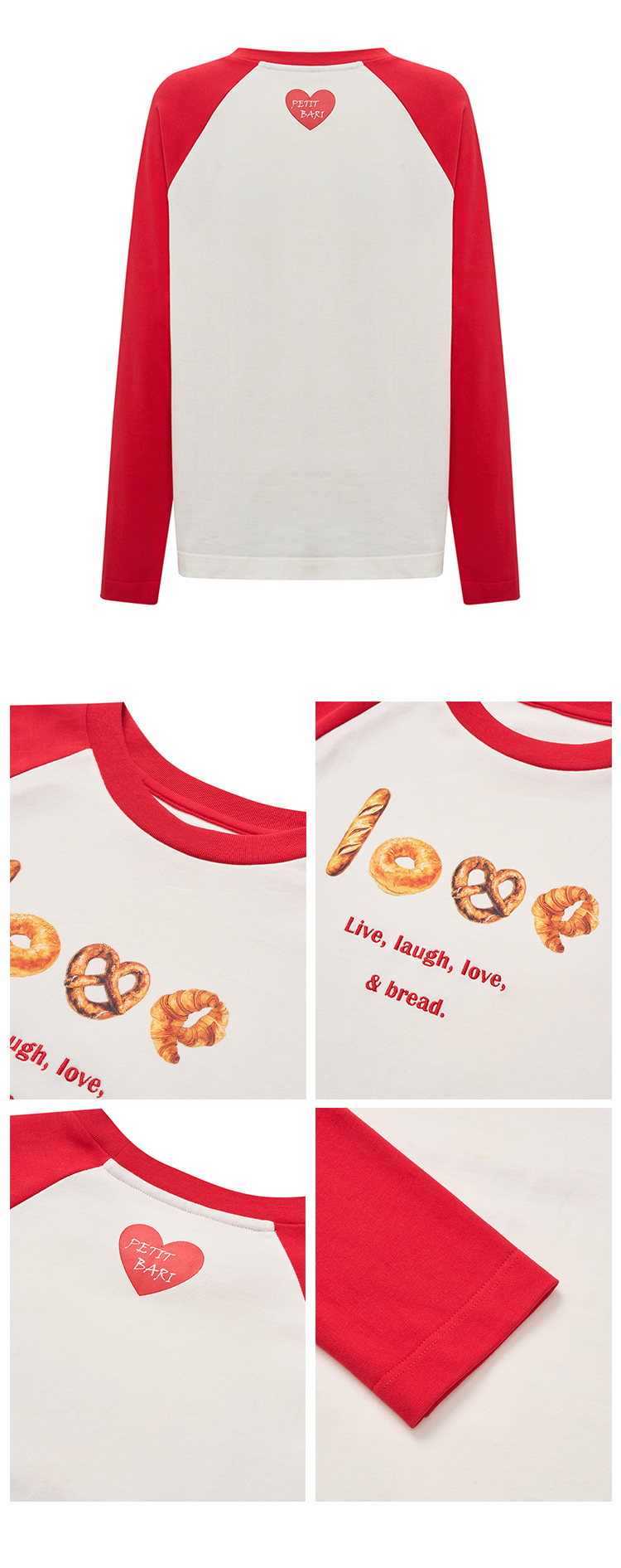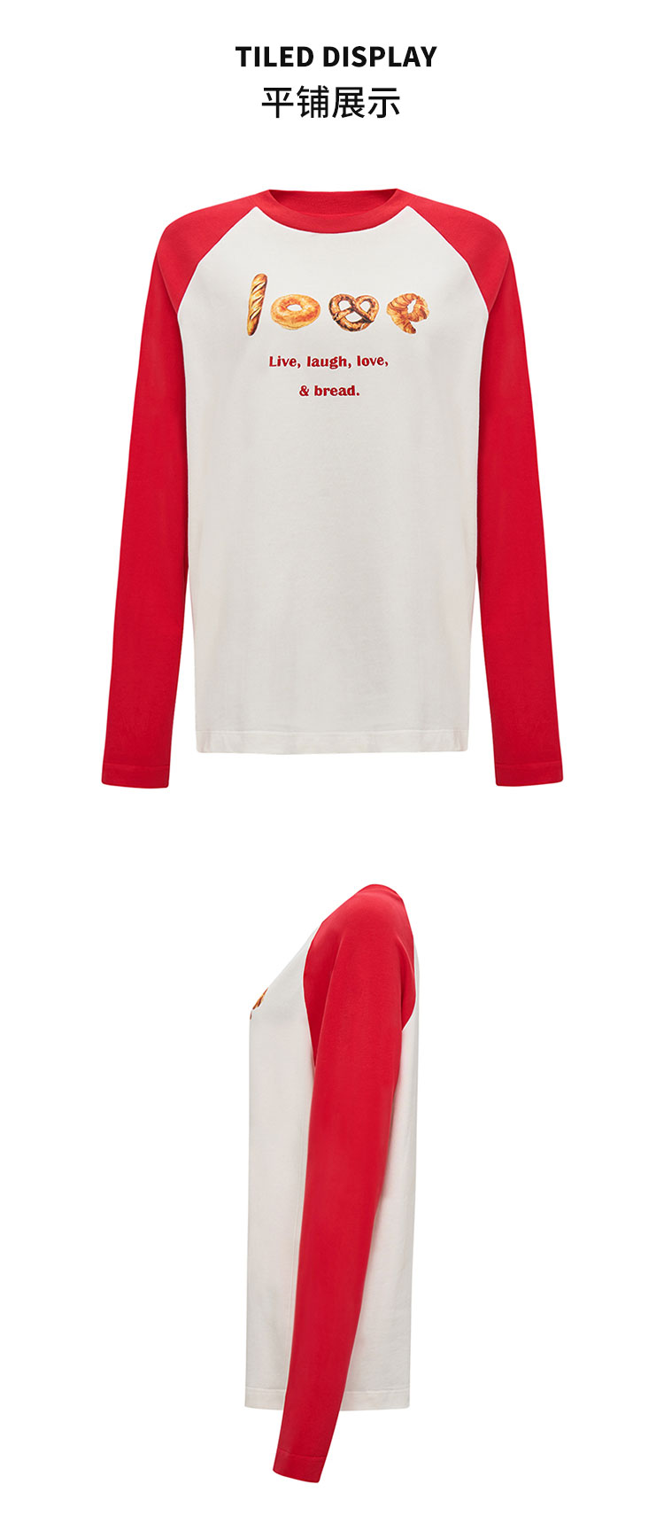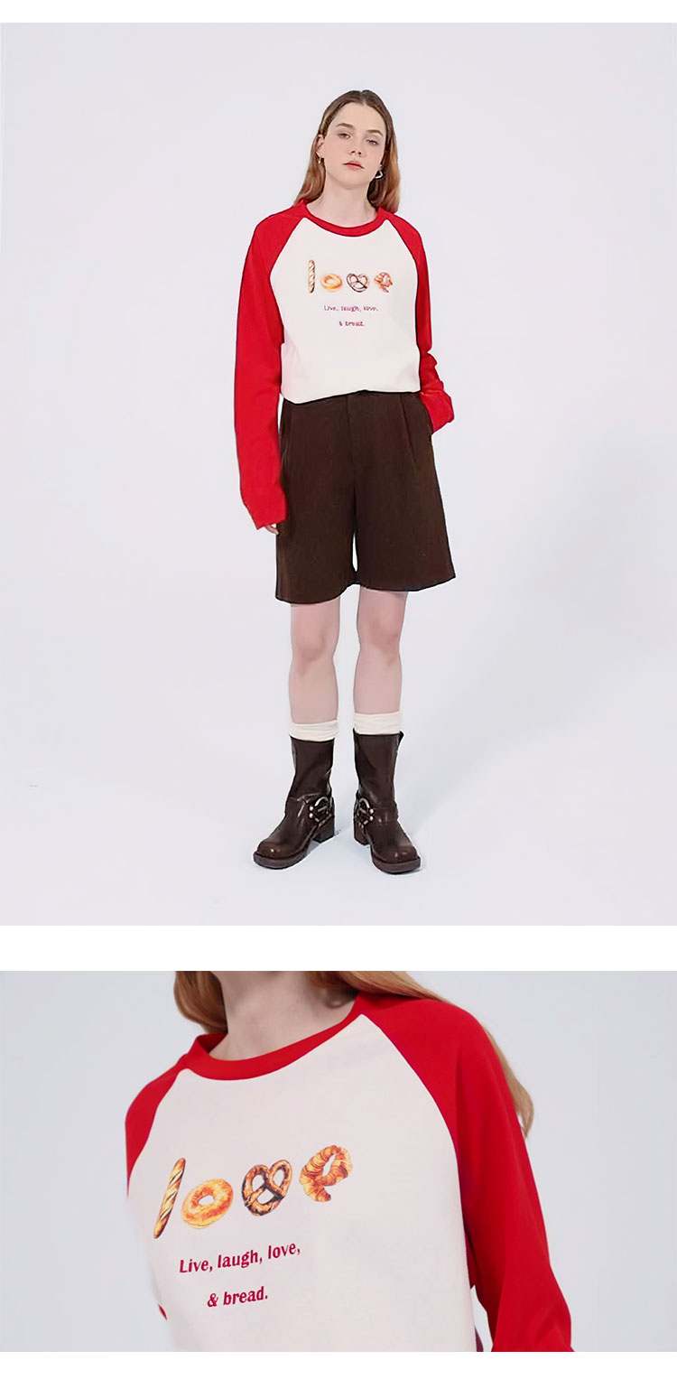 【2件9折】【Petit Bari】面包印花宽松插肩长袖T恤休闲